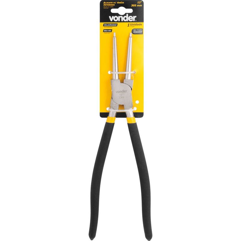 Ref. Fornecedor: 3662000310Marca: VonderConteúdo Embalagem:1 AlicateDestaques e diferenciais:Produzido em aço cromo vanádio, proporcionando maior resistência e durabilidadeAplicações e dicas de uso:Indicado para uso profissional na remoção e colocação de anéis internos de retençãoCaracterísticas Técnicas:Material do corpo do alicate: Aço cromo vanádio Acabamento do alicate: Niquelado Comprimento total do alicate: 12" - 305 mm Tipo do cabo do alicate: Plastificado Tipo do bico do alicate: Reto interno Diâmetro de aplicação: 60 mm - 110 mmGarantia legal: 90 dias