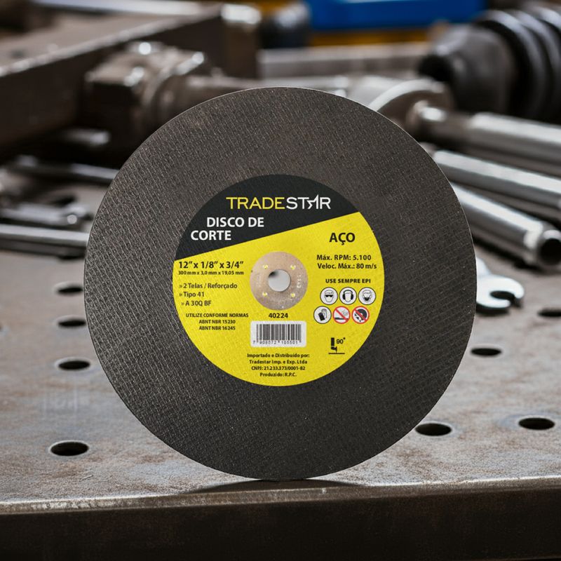 Disco de Corte Tradestar 300 x 3 mm Furo 3/4" mm AçoO Disco de Corte Tradestar 300 x 3 mm Furo 3/4" Aço é um acessório essencial para quem busca precisão, resistência e segurança no corte de metais. Desenvolvido com óxido de alumínio aglomerado com resina, este disco oferece alta durabilidade, cortes uniformes e excelente desempenho em aplicações industriais e profissionais.Com diâmetro externo de 300 mm (12"), espessura de 3,0 mm e furo central de 19,05 mm (3/4"), ele é ideal para uso em serras de corte estacionárias (cut-off machines), proporcionando cortes firmes e seguros em metais ferrosos e não ferrosos. Sua estrutura reforçada com duas telas de fibra de vidro aumenta a resistência mecânica, garantindo maior segurança durante o uso em altas rotações.Esse disco foi projetado para suportar operações intensas em ambientes como serralherias, metalúrgicas, oficinas mecânicas e na construção civil, onde a robustez e a confiabilidade do equipamento são fundamentais para manter a produtividade. Graças à sua largura de 3 mm, o disco oferece equilíbrio entre durabilidade e precisão: é suficientemente resistente para suportar trabalhos pesados, mas também garante um corte eficiente e com menor esforço da máquina. O furo central de 19,05 mm (3/4") permite compatibilidade com os principais modelos de serras de bancada, tornando sua utilização prática e segura.O Disco de Corte Tradestar 300 x 3 mm é a escolha ideal para quem precisa de um acessório de qualidade, confiável e de excelente custo-benefício para cortes em metais. Ele reduz a necessidade de trocas frequentes, aumenta a eficiência do trabalho e proporciona resultados consistentes em diferentes aplicações.Especificações- Diâmetro externo: 300 mm (12")- Espessura: 3,0 mm- Furo central: 19,05 mm (3/4")- Material: Óxido de alumínio aglomerado com resina- Reforço: 2 telas de fibra de vidro- Aplicações: Corte de metais ferrosos e não ferrosos- Segmento: Metalurgia / Construção Civil / Manutenção IndustrialItens inclusos- 1 Disco de Corte 300 x 3,0 mm 2 Telas Furo 19,05 mm AçoGarantia- 03 meses com o Fabricante