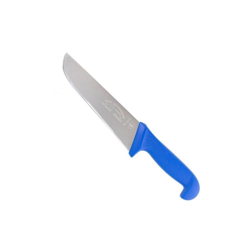 FACA CARNE 8 CABO AZUL PREMIUM - Dimensões da Peça: 33,5 x 5,6 x 3cm - Dimensões da Embalagem: 34,5 x 5,6 x 3cm - Quantidade Inner: 10 Peças - Dimensões Inner: 36,5 x 12,5 x 10cm - Quantidade Master: 40 Peças - Dimensões Master: 38,5 x 26 x 21,5cm - Material: Aço Inox e PP - Cor: - Cabo: Azul - Lâmina: Prata - Tipo de Embalagem: Bainha - Marca: Corneta Cutelaria - Origem: Fabricado na China sob supervisão técnica Corneta do Brasil. - Espessura: 3mm - Lâmina: 8 203mm - Contém: 1 Unidade - Cabo com Proteção antimicrobiana - Certificado NSF de Aprovação. - Cabo com proteção antimicrobiana. - Indicação: - Indicada para cortar e fatiar carnes, verduras e legumes. - Características: - Lâmina de 3mm de espessura estampada em aço inoxidável recebendo tratamento térmico total. - Cabo aGarantia do produto: 90 dias de garantia de acordo com o Código de Defesa do Consumidor + a Garantia do Fabricante