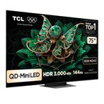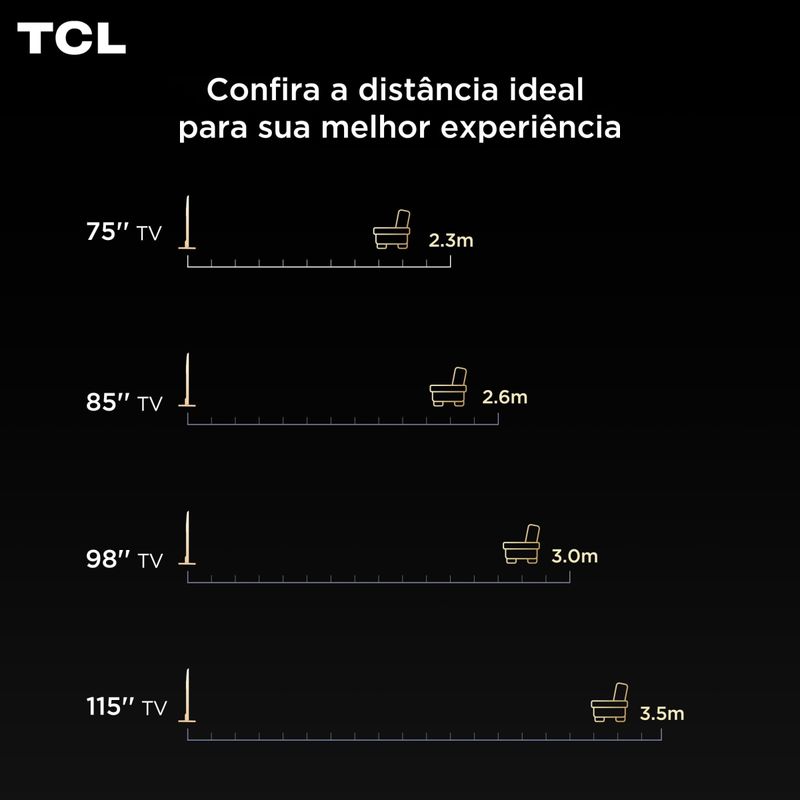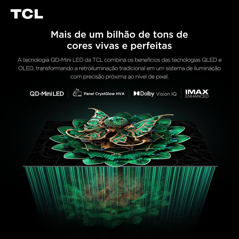 Qualidade de Imagem que Impressiona A Smart TV 75” 4K QD-Mini TCL Premium C7K impressiona com sua tecnologia de ponta em exibição. Com cristal líquido e nanotecnologia biomimética inspirada nas asas de borboleta, essa televisão premium oferece contraste elevado, controle preciso da luz e imagens mais nítidas com o auxílio do filme nano antirreflexo. Performance Visual com Inteligência Artificial Equipada com o avançado processador AiPQ Pro, essa TV TCL utiliza inteligência artificial para otimizar cor, contraste e nitidez em tempo real. Cada quadro é refinado com precisão de nível do píxel, garantindo imagens ultra-realistas, naturais e vibrantes em qualquer conteúdo. Áudio Envolvente de Cinema Muito além da imagem, a TV TCL 75" entrega uma experiência sonora envolvente com a tecnologia Dolby Atmos. O áudio tridimensional preenche o ambiente com clareza e profundidade, proporcionando sensação real de imersão em filmes, séries, shows e jogos. Tecnologia Inteligente ao Seu Alcance Essa Smart TV oferece controle por comandos de voz via Alexa e Google Assistente, além de integração com celulares e tablets compatíveis. Moderna e prática, a televisão TCL C7K transforma sua sala em um verdadeiro centro de entretenimento com alta performance e conectividade total.