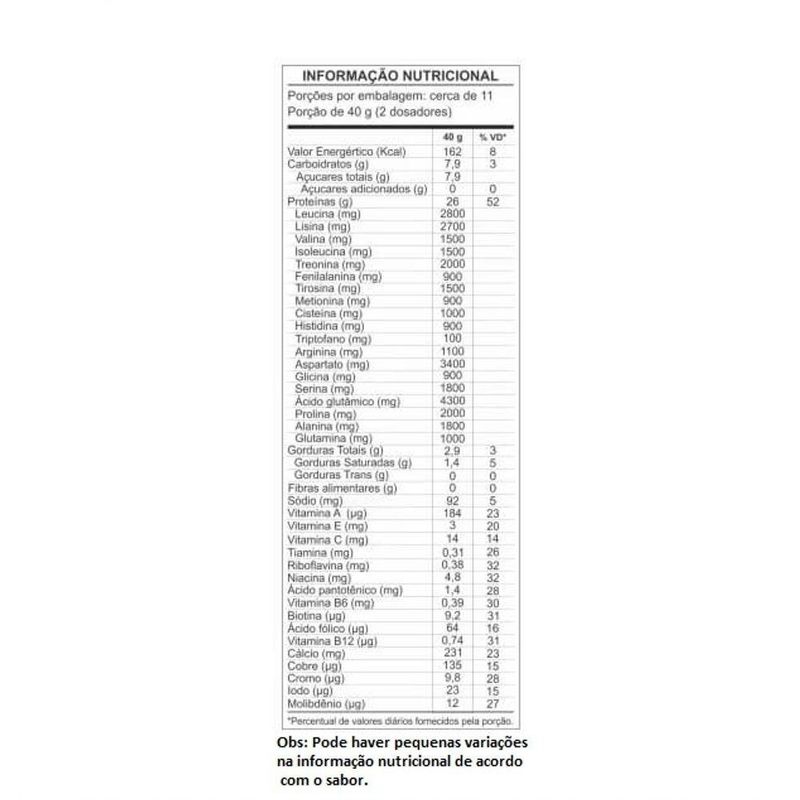 100% Whey Protein (900g) - Sabor: Cookies100% Whey Protein - Poder e nutrição para seu treino Com alta quantidade de proteínas e BCAAs, este suplemento é uma fonte de cromo, rico em vitamina B12 e B6. A combinação ideal de proteínas e nutrientes para apoiar seu desempenho e saúde em um pó saboroso e prático. Com uma textura cremosa e um sabor delicioso, nosso pó de whey protein é facilmente misturado com água ou leite, tornando-se uma opção prática e saborosa para complementar sua dieta diária e atingir suas metas de treinamento Uma escolha ideal para atletas que buscam maximizar o desempenho, a recuperação e o crescimento muscular, enquanto desfrutam dos benefícios adicionais das vitaminas e minerais essenciais para uma vida saudável e equilibrada. Benefícios: - Auxilia no metabolismo energético, de proteínas, carboidratos e gorduras;- Recuperação pós treino;- Bom funcionamento do sistema imune;- Auxilia na formação de massa muscular.Informação Nutricional 100% Whey Protein - Shark ProPorções por embalagem: 23 porçõesPorção de 40g (2 dosadores)Quantidade por porção%VD(*)Valor energético - kcal1627Carboidratos - g7,93Proteínas - g2652L-Alanina1800**L-Arginina1100**Ácido aspástico - mg3400**Ácido Glutâmico - mg4300**Cisteína - mg1000**Glicina - mg900**Histidina - mg900**Leucina - mg2800**Isoleucina - mg1500**Valina - mg1500**Lisina - mg2700**Metionina - mg900**Fenilalanina - mg900**Prolina - mg2000**Serina - mg1800**Treonina - mg2000**Tirosina - mg1500**Triptofano - mg1000**Glutamina - mg1000**Gorduras totais - g2,94Gorduras saturadas - g2,511Sódio - mg1105Cálcio -mg23123Tiamina - mg0,3130Riboflavina - mg0,3829Niacina - mg4,830Vitamina B5 - mg1,428Vitamina B6 - mg0,3930Ácido Fólico - mcg6427Vitamina B12 - mcg0,7431Vitamina A - mg18431Vitamina E - mg3,030Vitamina C - mg1431Biotina - mcg9,231Cobre - mcg0,240Cromo - mcg9,828Iodo - mg3,02Molibdênio - mcg1227Não contém quantidades significativas de valor energético, carboidratos, açúcares totais, açúcares adicionados, proteínas, gorduras totais, gorduras saturadas, gorduras trans, fibras alimentares e sódio.* Porcentual de valores diários fornecidos pela porção. Obs: Pode haver pequenas variações na informação nutricional de acordo com o sabor.