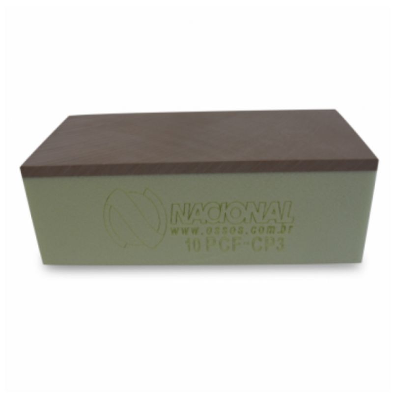 10PCF-CP3 - Corpo De Prova Com Cortiçal 3mm - L 4,5 X C 9,5 X A 3,3 cm O corpo de prova 10PCF-CP3 é uma placa poliuretânica utilizada para testes de biomecânica de 10PCF com camada cortical de 40PCF de 3mm com alta estabilidade dimensional, tendo como característica sua estrutura uniforme.