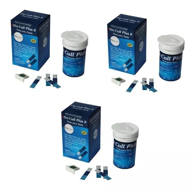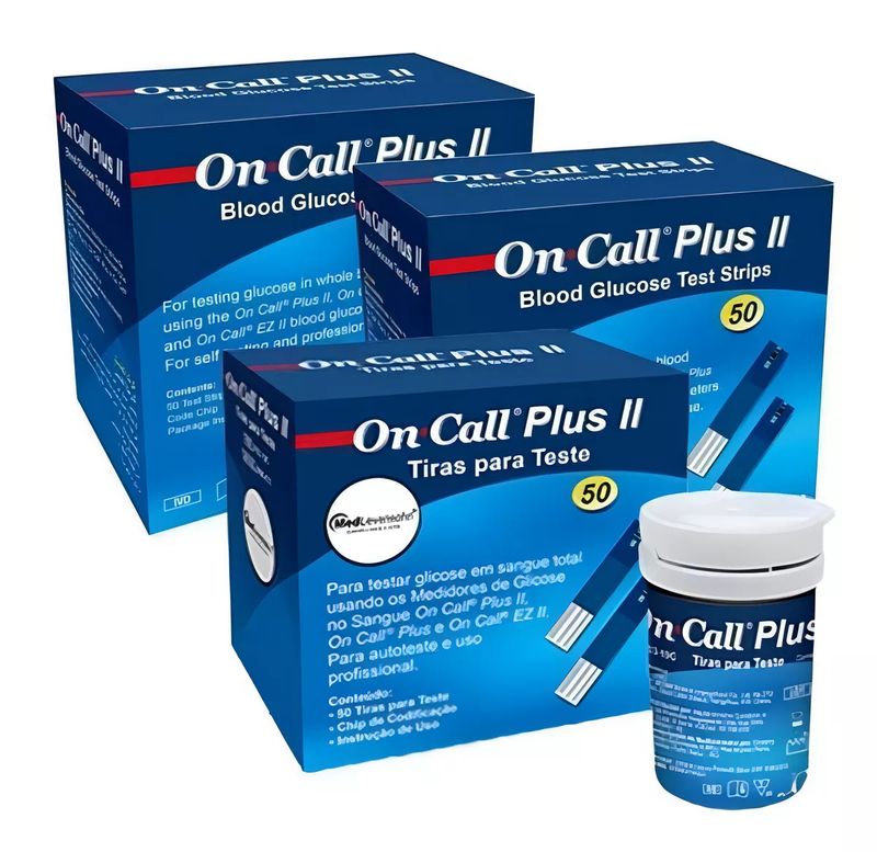 150 Tiras De Glicose On Call Plus IiDescriçãoMantenha um controle preciso e constante da sua saúde com o glicosímetro On Call Plus Ii 150 Tiras De Glicose On Call Plus Ii. Graças ao monitoramento diário dos valores de glicose no sangue, você pode regular o consumo de alimentos e exercícios para levar uma vida sem complicações.Histórico nas suas mãosGraças à memória interna do produto, você pode salvar os resultados de 50 medições anteriores. Dessa forma, obter um registro da evolução dos seus níveis sanguíneos se torna uma tarefa simples e fácil.Características do produtoCaracterísticas principaisMarcaOn Call Plus IiModelo150 Tiras De Glicose On Call Plus IiCorAzul-escuroRegistros de produtosNúmero de registro de produto na Anvisa80560310031OutrosAcessórios incluídosTiras reagentesCapacidade de armazenamento de resultados50