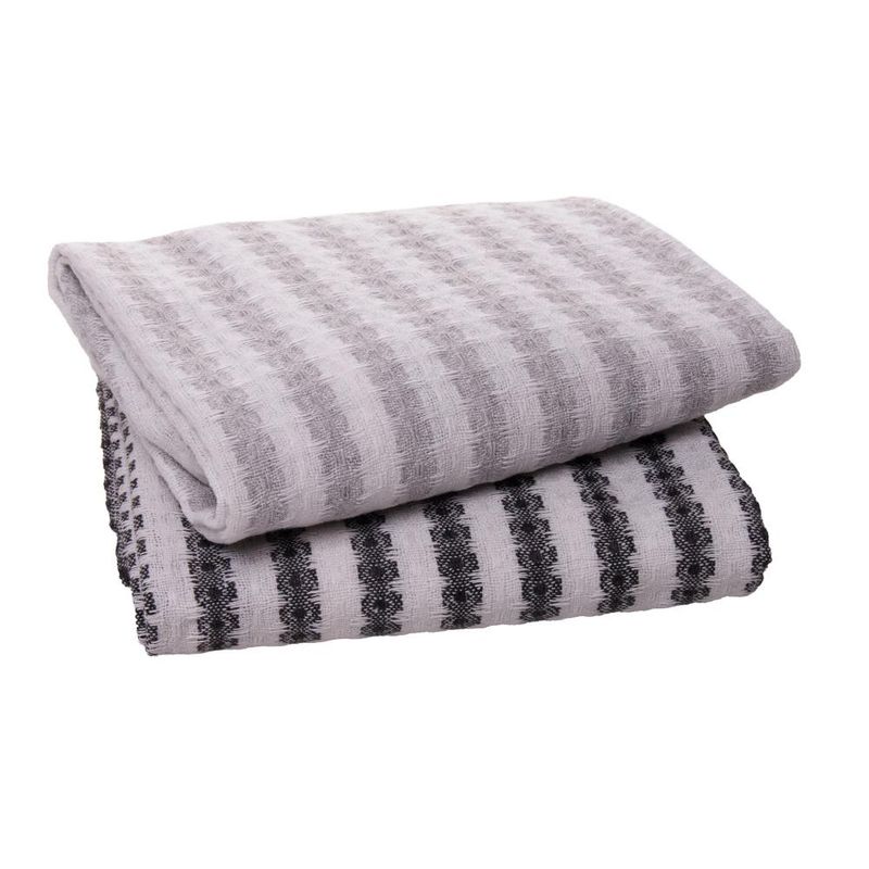 2 Panos de Prato Lyor Verona 60x40cm Cinza e Branco Algodão