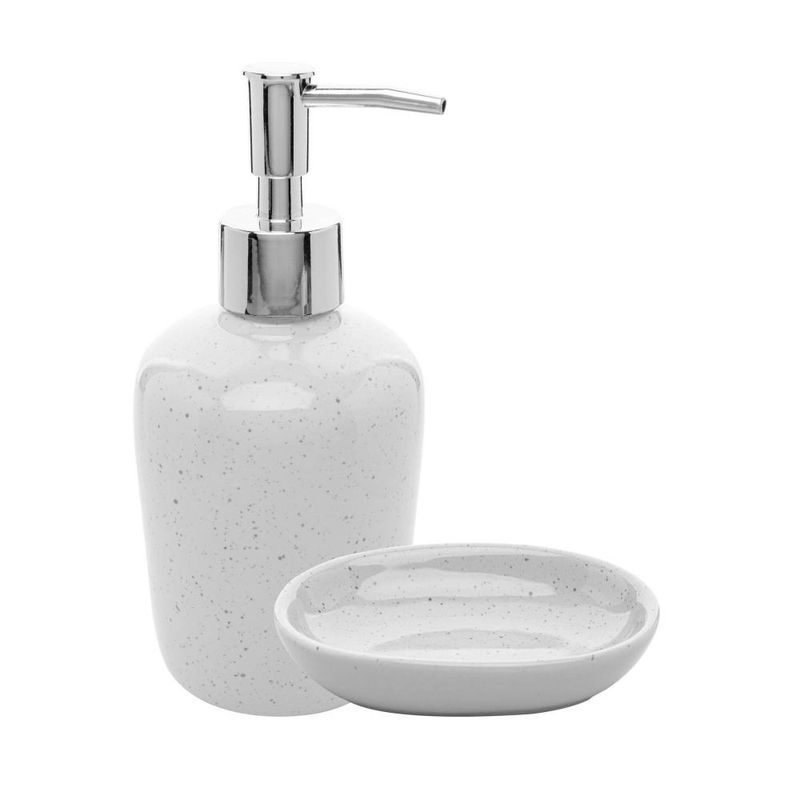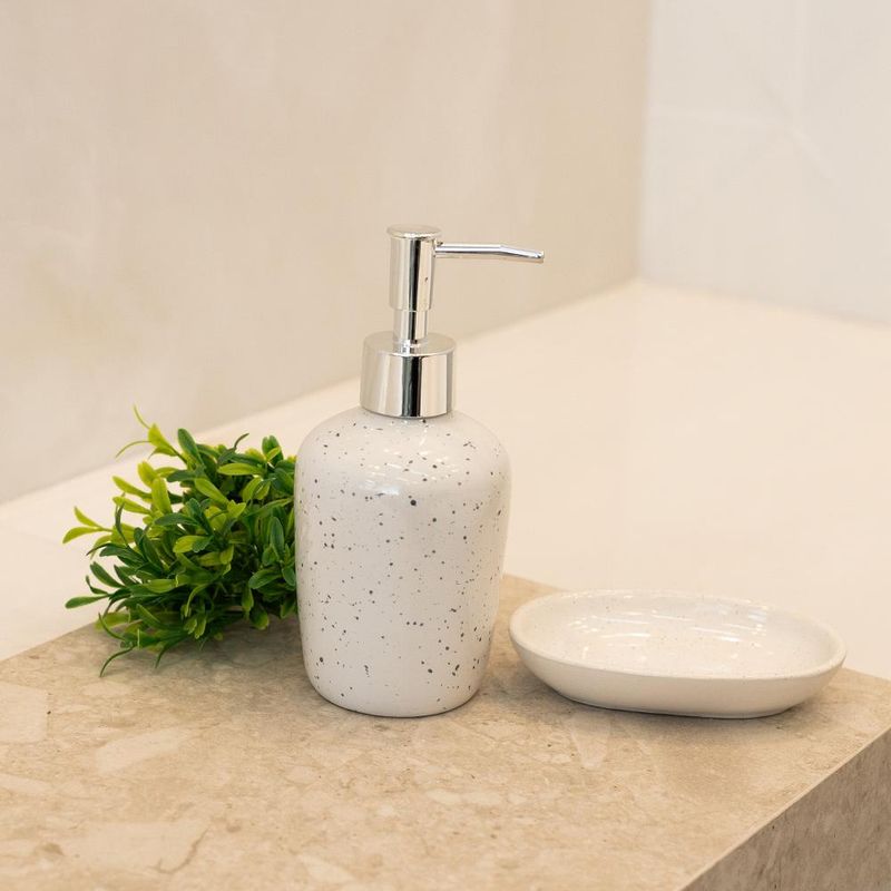 2 Peças para Banheiro Wolff Dots de Cerâmica BrancoConjunto 2 Peças para Banheiro de Cerâmica Dots Branco - WolffSeu lar é um reflexo do seu estilo, e cada detalhe conta uma história. Na arte de receber, servir, e decorar, cada elemento é uma expressão do seu bom gosto e sofisticação.Elegância IntemporalTransforme seu banheiro em um oásis de sofisticação com o Conjunto 2 Peças para Banheiro de Cerâmica Dots Branco da Wolff. Sua elegância atemporal eleva o ambiente, adicionando um toque de luxo discreto.Design DistintoAs linhas suaves e o acabamento impecável deste conjunto refletem uma estética de design distinto. Cada peça é uma obra de arte funcional, feita para impressionar seus convidados e elevar sua experiência de decoração.Qualidade PremiumFabricado com cerâmica de alta qualidade, este conjunto é sinônimo de durabilidade e requinte. Cada detalhe é cuidadosamente trabalhado para garantir não apenas beleza, mas também funcionalidade duradoura.Versatilidade DecorativaCom sua tonalidade branca elegante, este conjunto oferece versatilidade decorativa. Complemente uma variedade de estilos e paletas de cores, permitindo que você crie arranjos únicos e personalizados em seu espaço.Em cada momento de convívio e hospitalidade, deixe o Conjunto 2 Peças para Banheiro de Cerâmica Dots Branco da Wolff falar por si só. Descubra como um simples toque de elegância pode transformar seu ambiente, criando memórias inesquecíveis e experiências verdadeiramente excepcionais.WOLFF. A melhor experiência em receber, servir, e decorar!Contém: 1 Porta Sabonete Líquido 8x8x17,5cm1 Saboneteira 12x8x2,5cmForno: NãoFogão: NãoMedidas Produto: Altura 15,40cm x Largura 8,50cm x Comprimento 10,00cmPeso: 0,38KgCor: BrancoMaterial: CerâmicaLavar com detergente neutro, esponja macia e secar imediatamente.