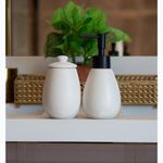 2 Peças Wolff Granilite para Banheiro de Cerâmica BrancoAdicione um toque de elegância e sofisticação ao seu banheiro com o Conjunto 2 Peças para Banheiro de Cerâmica Granilite Branco da Wolff.Design ModernoEste conjunto apresenta um design contemporâneo com detalhes em granilite, que proporcionam um visual moderno e refinado ao ambiente do seu banheiro. A tonalidade branca traz uma sensação de luminosidade e amplitude ao espaço.Qualidade SuperiorFabricadas com cerâmica de alta qualidade, estas peças são duráveis e resistentes, garantindo uma longa vida útil. A Wolff é reconhecida pela sua excelência em qualidade, e este conjunto não é exceção.Elegância FuncionalComposto por dois itens essenciais para o seu banheiro, este conjunto combina funcionalidade com elegância. O design em granilite branco adiciona um toque de estilo e sofisticação à sua decoração, criando um ambiente convidativo e harmonioso.Versatilidade de UsoAs peças podem ser usadas para diversas finalidades no banheiro, desde organização de acessórios até decoração de prateleiras e bancadas. Sua versatilidade permite adaptá-las conforme suas necessidades e preferências.Adicione charme e requinte ao seu banheiro com o Conjunto 2 Peças para Banheiro de Cerâmica Granilite Branco da Wolff.Wolff. A excelência em receber, servir e decorar!Contém: 1 Porta Sabonete Líquido 7x7x15,5cm1 Pote 7x7x11,5cmLava Louça: NãoMicroondas: NãoForno: NãoFogão: NãoFreezer: NãoMedidas Produto: Altura 13,00cm x Largura 7,50cm x Comprimento 15,00cmPeso: 0,29KgCor: BrancoMaterial: CerâmicaLavar com detergente neutro, esponja macia e secar imediatamente.
