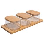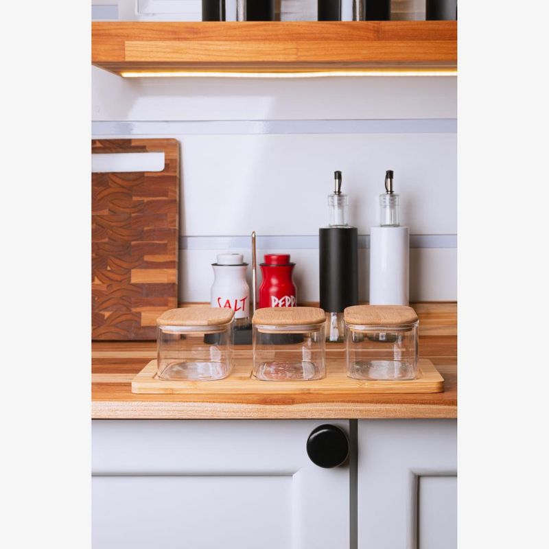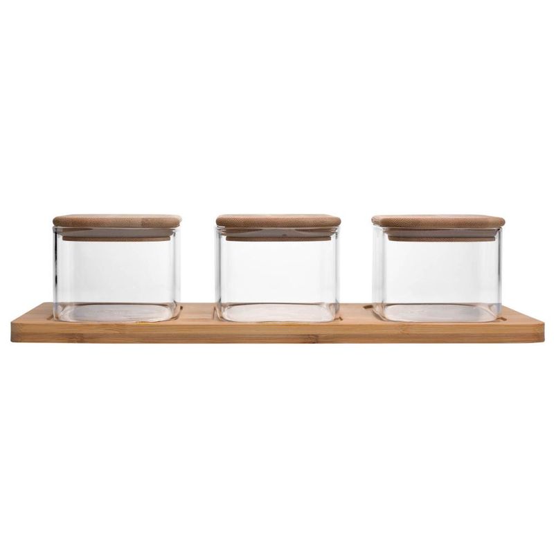 3 Potes com Tampa e Bandeja Bambu Wolff Vidro BorossilicatoO Conjunto 3 Potes com Tampa e Bandeja de Bambu de Vidro Borossilicato - Wolff é a combinação perfeita de funcionalidade e elegância para sua cozinha. Ideal para armazenar e organizar alimentos, este conjunto traz sofisticação com a durabilidade do vidro borossilicato e a beleza natural do bambu. A bandeja facilita o uso e transporte, mantendo seus alimentos sempre à vista de forma organizada.O Conjunto 3 Potes com Tampa e Bandeja de Bambu de Vidro Borossilicato - Wolff é a combinação perfeita de funcionalidade e elegância para sua cozinha. Ideal para armazenar e organizar alimentos, este conjunto traz sofisticação com a durabilidade do vidro borossilicato e a beleza natural do bambu. A bandeja facilita o uso e transporte, mantendo seus alimentos sempre à vista de forma organizada.BenefíciosDurabilidade e ResistênciaO vidro borossilicato é altamente resistente a temperaturas extremas, garantindo maior durabilidade e segurança no armazenamento dos alimentos.Sustentabilidade com BambuAs tampas e a bandeja são feitas de bambu, um material ecológico e renovável, trazendo sustentabilidade e estilo natural à sua cozinha.Armazenamento OrganizadoO conjunto oferece três potes com tamanhos práticos para diferentes tipos de alimentos, além de uma bandeja que mantém tudo no lugar, facilitando o transporte e organização.Modo de usar e limparUtilize os potes para armazenar alimentos secos, como grãos, cereais, ou biscoitos. Para limpar, lave os potes de vidro com água e sabão neutro e limpe as tampas de bambu com um pano úmido, evitando submergir o bambu para prolongar sua vida útil.Transforme sua organização com o Conjunto 3 Potes com Tampa e Bandeja de Bambu de Vidro Borossilicato - Wolff, que alia beleza, funcionalidade e sustentabilidade.Wolff - Construindo memórias e eternizando momentos.Contém: 3 Potes com Tampa Hermética 1 Bandeja de BambuMedidas Produto: Altura 7,80cm x Largura 13,80cm x Comprimento 33,00cmPeso: 0,94KgLavar com detergente neutro, esponja macia e secar imediatamente.