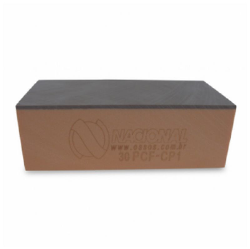 30PCF-CP1 - Corpo de Prova Com Cortical 1MM - L 4,5 X C 9,5 X A 3,1 CM O corpo de prova 30PCF-CP1 é uma placa poliuretânica utilizada para testes de biomecânica de 30PCF com camada cortical de 40PCF de 1mm com alta estabilidade dimensional, tendo como característica sua estrutura uniforme.