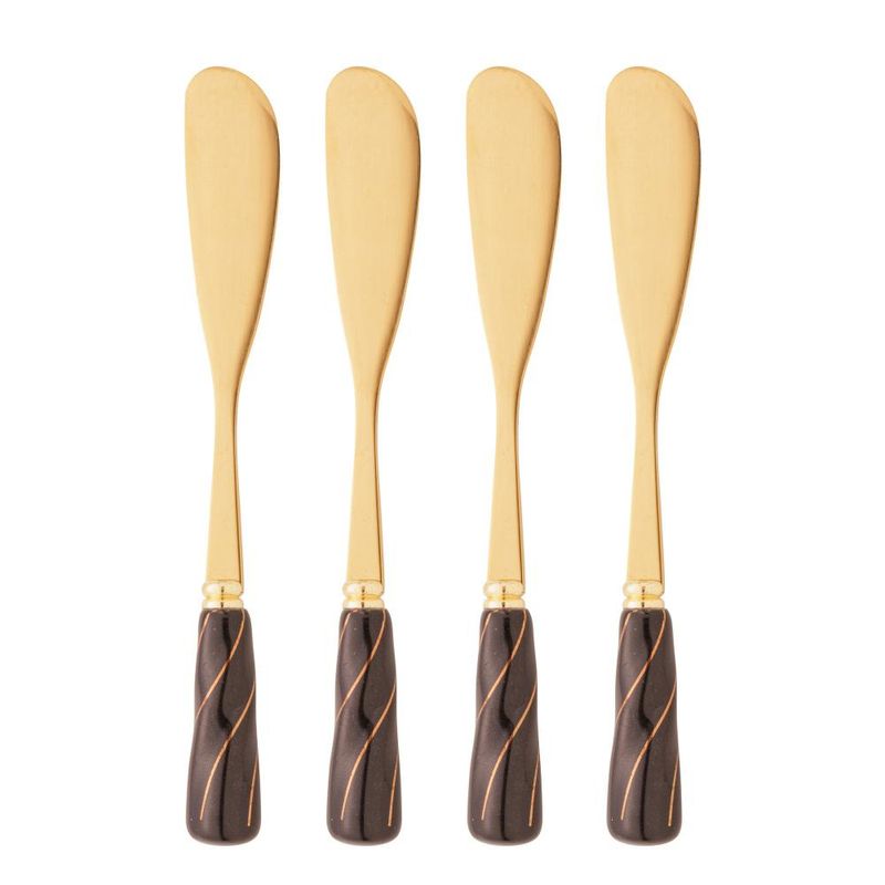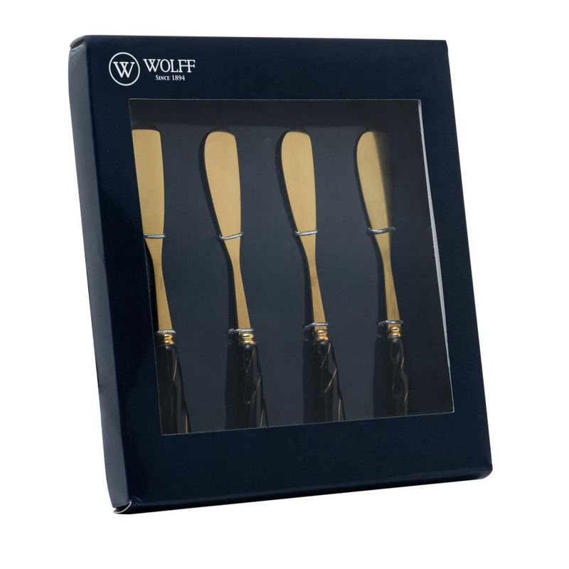 4 Espátulas Wolff de Aço Inox PretoO Conjunto de 4 Espátulas da Wolff é a síntese perfeita de sofisticação e funcionalidade. Cada espátula é uma obra-prima que combina a durabilidade do aço inoxidável dourado com a elegância do cabo de cerâmica preta, proporcionando uma experiência única em sua cozinha.Aço Inox Dourado DurávelAs espátulas são fabricadas em aço inoxidável de alta qualidade, garantindo resistência, durabilidade e facilidade de limpeza.Cabo de Cerâmica PretoO cabo em cerâmica preta não apenas adiciona um toque de elegância, mas também oferece uma pegada confortável e segura durante o uso.Design EleganteInspiradas na beleza das formas naturais, as espátulas apresentam um design sofisticado que as torna não apenas ferramentas práticas, mas também elementos decorativos na sua cozinha.Conjunto CompletoCom quatro espátulas de diferentes tamanhos e formas, você tem à disposição ferramentas versáteis para lidar com diversas tarefas culinárias.O Conjunto 4 Espátulas de Aço Inox Dourado com Cabo de Cerâmica Preto da Wolff é a escolha refinada para chefs e apreciadores da culinária que valorizam a excelência em cada detalhe.Wolff - A melhor experiência em receber, servir e decorar.Contém: 4 EspátulasLava Louça: NãoMicroondas: NãoForno: NãoFogão: NãoFreezer: NãoMedidas Produto: Altura 1,20cm x Largura 1,70cm x Comprimento 13,00cmPeso: 0,02KgCor: PretoMaterial: Aço InoxLavar com detergente neutro, esponja macia e secar imediatamente. Não utilizar outros produtos químicos.