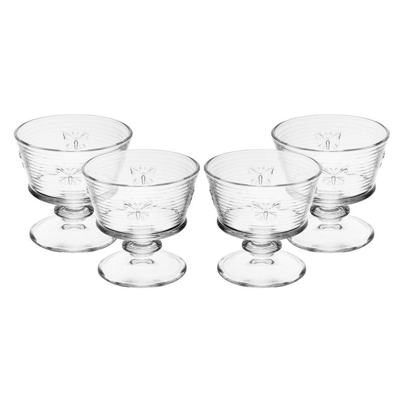 4 Taças para Sobremesa Wolff Lines Butterfly 240ml VidroAdicione um toque de elegância à sua mesa com o Conjunto 4 Taças para Sobremesa Lines Butterfly da Wolff. Cada taça, feita de vidro com capacidade de 240ml, combina beleza e funcionalidade para servir suas sobremesas favoritas com estilo.Design EncantadorAs taças apresentam um design delicado com detalhes de borboleta, criando uma atmosfera sofisticada.Tamanho IdealCom capacidade de 240ml, são perfeitas para servir sobremesas como mousses, sorvetes e pudins.Qualidade SuperiorFeitas de vidro de alta qualidade, proporcionam durabilidade e preservam o sabor das sobremesas.Encante seus convidados com o Conjunto 4 Taças para Sobremesa Lines Butterfly da Wolff, ideal para ocasiões especiais. Wolff - Construindo memórias e eternizando momentos.Contém: 4 Taças para Sobremesa 10cm x 10cm x 9,8cm - 240mlLava Louça: NãoMicroondas: NãoForno: NãoFogão: NãoFreezer: NãoMedidas Produto: Altura 9,50cm x Largura 10,00cm x Comprimento 10,00cmPeso: 0,27KgCor: IncolorMaterial: VidroLavar com detergente neutro, esponja macia e secar imediatamente.