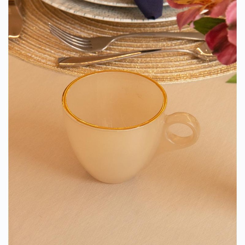 4 Xícaras Chá com Pires Milky Fio de Ouro 170ml Areia VidroCharme suave com acabamento especial.Charme suave com acabamento especial.Com tonalidade areia e detalhe dourado na borda, o conjunto Milky traz elegância sutil para os momentos de pausa. Perfeito para servir com estilo, sem abrir mão da leveza.• Vidro com acabamento foscoVisual delicado com textura suave• Fio de ouro na bordaToque sofisticado que valoriza a peça• Capacidade de 170mlIdeal para chás, infusões ou cafés mais longos• Acompanha piresConjunto completo e harmonioso• Cor areiaNeutra e versátil para diferentes composiçõesUm conjunto que transforma o simples ato de servir em um momento encantador.Contém: 4 Xícaras 11x8x7cm4 Pires 12x12x1,5cmMedidas Produto: Altura 9,00cm x Largura 12,00cm x Comprimento 12,00cmPeso: 0,31KgLavar com detergente neutro, esponja macia e secar imediatamente.