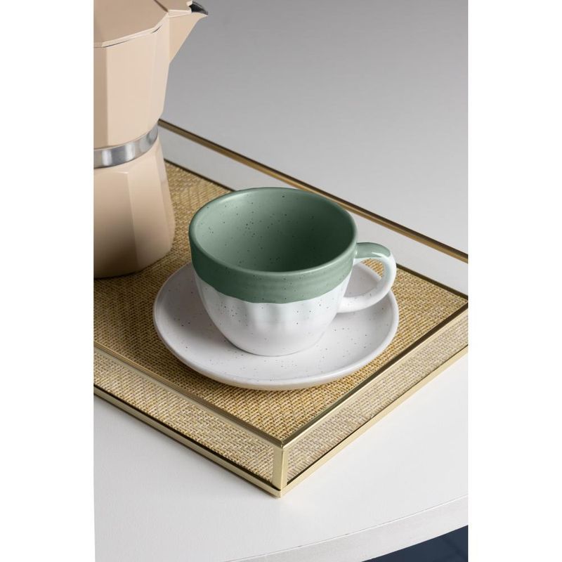 4 Xícaras de Chá com Pires Ombré Wolff 210ml Verde CerâmicaLeve sofisticação e estilo ao seu momento de chá. O Conjunto de 4 Xícaras de Chá com Pires Ombré 210ml Verde Cerâmica da Wolff é ideal para quem deseja transformar o ritual do chá em uma experiência especial. Com um design ombré elegante em tons de verde, este conjunto adiciona charme e exclusividade à sua mesa, perfeito para compartilhar momentos com quem você ama.Leve sofisticação e estilo ao seu momento de chá. O Conjunto de 4 Xícaras de Chá com Pires Ombré 210ml Verde Cerâmica da Wolff é ideal para quem deseja transformar o ritual do chá em uma experiência especial. Com um design ombré elegante em tons de verde, este conjunto adiciona charme e exclusividade à sua mesa, perfeito para compartilhar momentos com quem você ama.Design Moderno e Elegante O efeito ombré em verde confere uma beleza única e moderna, trazendo um toque sofisticado que enriquece qualquer ambiente.Conjunto Completo para Compartilhar Com 4 xícaras de 210ml e pires, é ideal para servir chás e outras bebidas em uma quantidade generosa, proporcionando momentos agradáveis entre amigos e familiares.Resistência e Qualidade Superior Produzido em cerâmica de alta qualidade, o conjunto é durável e mantém a temperatura da bebida por mais tempo, garantindo uma experiência de experiência prolongada.Modo de Usar/LimparAntes do primeiro uso, lave as xícaras e os pires com água e sabão neutro. Após o uso, utilize uma esponja macia para preservar o acabamento ombré. Como as peças podem ser lavadas em lava-louças, mas recomendamos evitar o uso em micro-ondas para manter a cor e o efeito ombré.Com o Conjunto de 4 Xícaras de Chá com Pires Ombré 210ml Verde Cerâmica da Wolff, você cria momentos inesquecíveis ao redor da mesa. Essa é a escolha ideal para quem aprecia o design refinado e a qualidade que eleva o prazer de cada gole. Wolff - Construindo memórias e eternizando momentos.Contém: 4 Xícaras de Chá 11x9x6,5cm4 Pires 12,5x12,5x2cmMedidas Produto: Altura 6,30cm x Largura 13,20cm x Comprimento 13,20cmPeso: 1,58KgLavar com detergente neutro, esponja macia e secar imediatamente. Não utilizar outros produtos químicos.