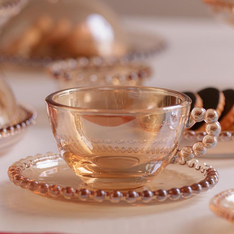 4 Xícaras de Chá Wolff Pearl de Cristal Âmbar 180mlDesfrute de momentos de sofisticação com o Conjunto de 4 Xícaras de Chá de Cristal com Pires Pearl Âmbar Metalizado da Wolff. Cada xícara, com capacidade de 180ml, é uma peça de elegância única para apreciadores de chá.Elegância em Âmbar MetalizadoCada xícara é uma obra-prima de cristal, enriquecida pelo tom Âmbar Metalizado do Pires Pearl. A tonalidade sofisticada adiciona um toque de calor e luxo à sua experiência de degustar chá.Prazer em Cada MomentoCom capacidade ideal para apreciar chás aromáticos, este conjunto proporciona momentos de deleite a cada gole. A transparência do cristal permite apreciar as nuances de cores e aromas da bebida.Versatilidade em Cada DetalheO Conjunto de 4 Xícaras de Chá é versátil e adequado para diferentes ocasiões, desde encontros íntimos até celebrações formais. Sua presença refinada é um convite para desfrutar de momentos únicos.Durabilidade e EstiloA qualidade do cristal assegura durabilidade, enquanto o design atemporal do conjunto Pearl Âmbar Metalizado garante que esta peça seja um investimento para toda a vida.Para quem valoriza a arte de apreciar chá com distinção, o Wolff é a escolha perfeita. Deixe sua mesa falar por si, destacando-se em elegância e bom gosto.Wolff - A melhor experiência em receber, servir e decorar.Contém: 4 Xícaras 180Ml 12x10x6cm 212G 4 Pires 14x14x1,5cm 228GLava Louça: NãoMicroondas: NãoForno: NãoFogão: NãoFreezer: NãoMedidas Produto: Altura 12,00cm x Largura 20,00cm x Comprimento 20,00cmPeso: 1,17KgCor: ÂmbarMaterial: CristalCapacidade: 180mlLavar com detergente neutro, esponja macia e secar imediatamente. Não utilizar outros produtos químicos.