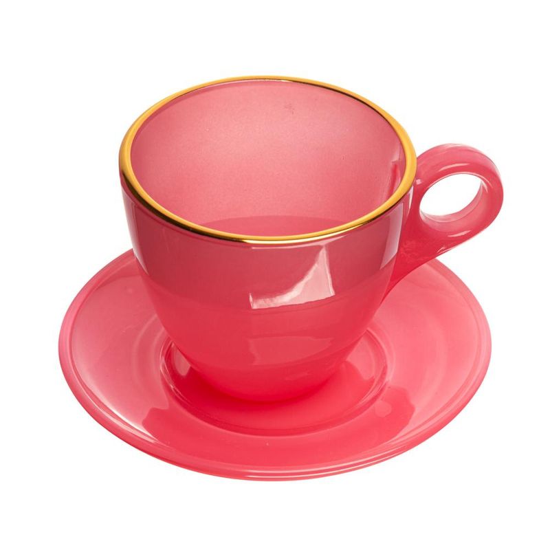 4 Xícaras Wolff Milky de Vidro com Fio de Ouro e Pires RosaConjunto 4 Xícaras de Vidro com Fio de Ouro e Pires Milky Rosa 170ml - WolffAprecie seus momentos de café com elegância e sofisticação com o Conjunto de 4 Xícaras de Vidro com Fio de Ouro e Pires na tonalidade Milky Rosa da Wolff. Este conjunto combina a delicadeza do vidro com o luxo do fio de ouro, criando uma experiência única para seus momentos de degustação.Por que escolher o Conjunto de 4 Xícaras de Vidro com Fio de Ouro e Pires Milky RosaEstilo e SofisticaçãoCom um design refinado, as xícaras de vidro apresentam um acabamento elegante em tom Milky Rosa, realçado pelo fio de ouro que envolve suas bordas, adicionando um toque de luxo à sua mesa.Material PremiumFabricadas em vidro de alta qualidade, estas xícaras são duráveis e resistentes, proporcionando uma experiência de uso refinada e sofisticada.Capacidade IdealCom capacidade de 170ml, as xícaras são perfeitas para servir porções generosas de café, cappuccino ou outras bebidas quentes, permitindo desfrutar de momentos agradáveis com família e amigos.Pires CoordenadoCada xícara vem acompanhada de um pires coordenado, complementando o conjunto com elegância e praticidade.VersatilidadeAlém de serem ideais para servir café, as xícaras também podem ser usadas para outras bebidas quentes ou até mesmo sobremesas, proporcionando versatilidade em sua utilização.Fácil ManutençãoAs xícaras e pires são fáceis de limpar e podem ser lavados à mão ou na lava-louças, garantindo praticidade em sua rotina.Desfrute de momentos especiais com o Conjunto de 4 Xícaras de Vidro com Fio de Ouro e Pires Milky Rosa da Wolff, elevando a experiência do seu café da manhã ou da tarde.Wolff. A melhor experiência em servir e encantar!Contém: 4 Xícaras 11x8x7cm4 Pires 12x12x1,5cmLava Louça: NãoMicroondas: NãoForno: NãoFogão: NãoMedidas Produto: Altura 7,00cm x Largura 8,00cm x Comprimento 11,00cmPeso: 0,19KgCor: RosaMaterial: VidroLavar com detergente neutro, esponja macia e secar imediatamente.