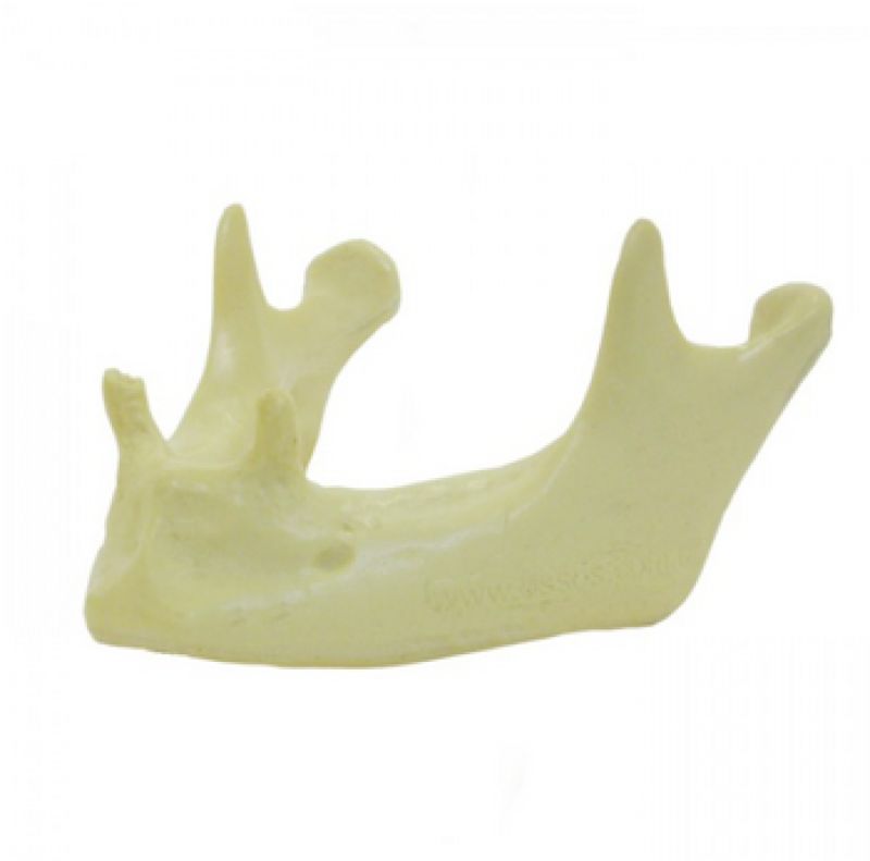 4011 - Mandíbula com Pré-Molares Desenvolvida em poliuretano rígido, esta mandíbula conta com os dentes 34 e 44, com simulação de nervo mandibular e pode ser articulada com todos os modelos de face de nossa linha (sugestão 4015), podendo fazer reabilitação com ou sem altura vertical.