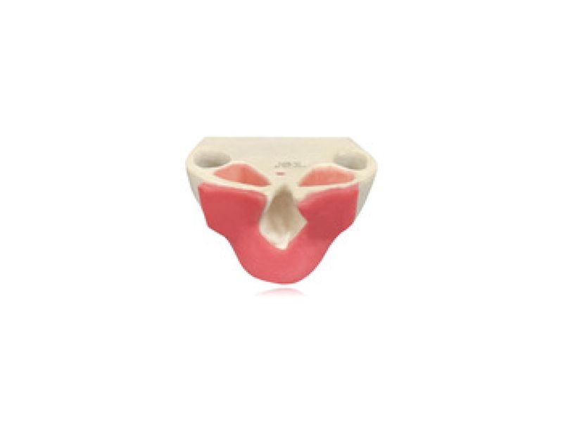 4017G - Maxila Edêntula Com Gengiva Esta MAXILA EDENTULA COM GENGIVA fabricada pela Nacional Ossos é um corte transversal do crânio, fabricada com propriedades mecânicas semelhantes ao osso humano (tipo 2), edêntula e gengiva, para treinamento de incisão, descolamento e sutura. Possui seio maxilar com membrana flexível, ATM, zigomático. Ideal para estudos, ensino à distância (EAD), práticas cirúrgicas e hands-on podendo ser cortado e perfurado. Ideal para hands-on de reabilitação oral total com implantes standard e também implantes de zigomático. Possibilita ao dentista ter um treinamento, muito próximo do real, capacitando-se com respeito á Bioética. Pode ser fixada no suporte (4020), que permite fazer todos os movimentos necessários de abertura de boca, tombamento e fechamento para o aluno trabalhar com as duas mãos como no paciente real.