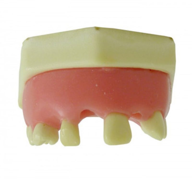 4802G - Maxila Com Ausência e Gengiva Parcial Ideal para o aperfeiçoamento da técnica de colocação de implantes e prótese. Ausência dos dentes 11, 13 e 22 na parte frontal, sendo a ausência do dente 11 com o alvéolo aberto e do dente 22 com alvéolo aberto e reabsorção óssea; dos dentes 25, 26 e 27 na lateral esquerda; e do dente 16 na lateral direita.