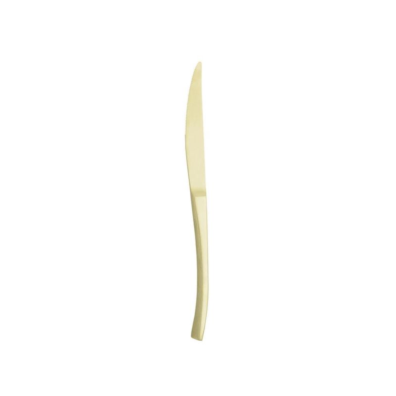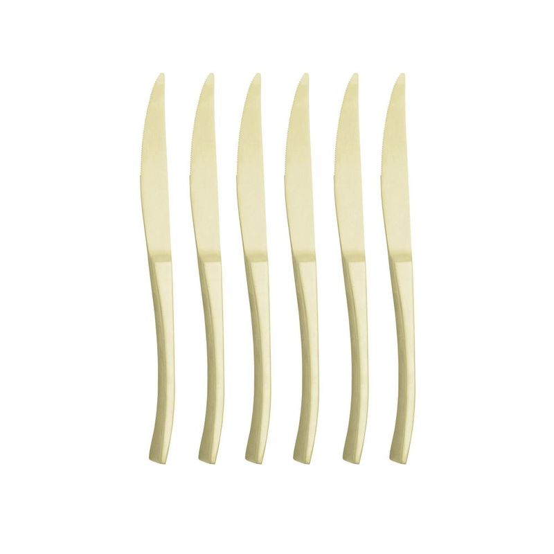 6 Facas para Mesa Wolff Berna de Aço Inox Champanhe FoscoAdicione um toque de elegância e sofisticação à sua mesa com o Conjunto 6 Facas para Mesa de Aço Inox Berna Champanhe Fosco da Wolff.Design RefinadoCada faca deste conjunto apresenta um design refinado e contemporâneo, com lâminas em aço inoxidável e cabos em champanhe fosco, proporcionando um visual luxuoso e exclusivo.Durabilidade e ResistênciaFabricadas com materiais de alta qualidade, estas facas são resistentes e duráveis, garantindo um corte preciso e eficiente. Seu acabamento em champanhe fosco não apenas adiciona uma camada de elegância, mas também proporciona resistência contra corrosão.Conforto e ErgonomiaOs cabos ergonômicos oferecem uma pegada confortável e segura, permitindo que você desfrute das suas refeições com facilidade e comodidade. A combinação de funcionalidade e estilo torna estas facas ideais para qualquer ocasião.Versatilidade na MesaPerfeitas para cortar uma variedade de alimentos, desde carnes a frutas, estas facas oferecem versatilidade e desempenho excepcional em todas as suas refeições. Seu design elegante e moderno as torna ideais para qualquer ambiente.Inovação WolffCom o Conjunto 6 Facas para Mesa de Aço Inox Berna Champanhe Fosco, você experimenta a inovação e qualidade que só a Wolff proporciona. Reconhecida por sua excelência em utensílios de mesa e decoração, a Wolff continua a surpreender com cada detalhe.Adicione um toque de sofisticação e requinte à sua mesa com o Conjunto 6 Facas para Mesa de Aço Inox Berna Champanhe Fosco da Wolff.Wolff. A excelência em receber, servir e decorar!Contém: 6 ColheresLava Louça: NãoMicroondas: NãoForno: NãoFogão: NãoFreezer: NãoMedidas Produto: Altura 1,50cm x Largura 1,50cm x Comprimento 22,50cmPeso: 0,09KgCor: ChampanheMaterial: Aço InoxLavar com detergente neutro, esponja macia e secar imediatamente. Não utilizar outros produtos químicos.