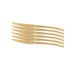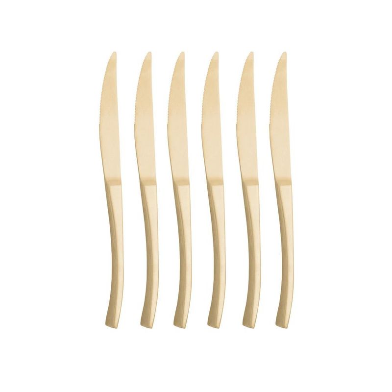 6 Facas para Sobremesa Wolff Berna Champanhe FoscoConjunto 6 Facas de Sobremesa de Aço Inox Berna Champanhe Fosco - WolffDesfrute de momentos de elegância e sofisticação à mesa com o Conjunto 6 Facas de Sobremesa de Aço Inox Berna Champanhe Fosco da Wolff.Design DistintoCada faca deste conjunto apresenta um design distinto e refinado, com lâminas em aço inoxidável e cabo em champanhe fosco que transmite um ar de requinte. A linha Berna da Wolff é sinônimo de sofisticação e estilo.Qualidade SuperiorFabricadas com materiais de alta qualidade, estas facas oferecem durabilidade e resistência excepcionais. Projetadas para resistir ao uso frequente, mantêm sua nitidez e precisão ao longo do tempo.Desempenho ConfiávelAs lâminas afiadas garantem cortes suaves e precisos, realçando cada momento à mesa. Seja para cortar bolos, tortas ou outras sobremesas, estas facas proporcionam um desempenho confiável em todas as ocasiões.Versatilidade na MesaAlém de sua função principal, estas facas são versáteis e adequadas para uma variedade de sobremesas e ocasiões. Seja em reuniões familiares ou jantares elegantes, elas complementam a mesa com elegância e praticidade.Tradição WolffCom o Conjunto 6 Facas de Sobremesa de Aço Inox Berna Champanhe Fosco, você tem em mãos a tradição e a excelência da marca Wolff. Reconhecida por sua qualidade inigualável, a Wolff é a escolha preferida para momentos especiais à mesa.Aprimore seus momentos à mesa com o Conjunto 6 Facas de Sobremesa de Aço Inox Berna Champanhe Fosco da Wolff.Wolff. A excelência em receber, servir e decorar!Contém: 6 FacasLava Louça: NãoMicroondas: NãoForno: NãoFogão: NãoFreezer: NãoMedidas Produto: Altura 1,50cm x Largura 1,50cm x Comprimento 22,00cmPeso: 0,07KgCor: ChampanheMaterial: Aço InoxLavar com detergente neutro, esponja macia e secar imediatamente. Não utilizar outros produtos químicos.
