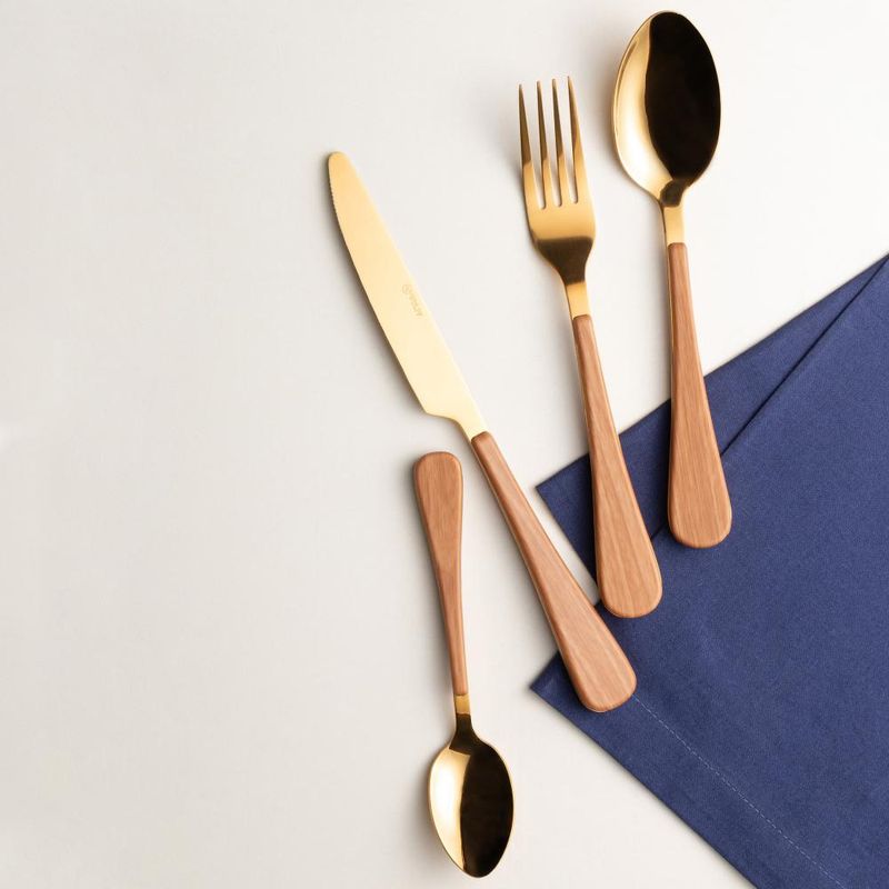 6 Garfos para Mesa Wolff Amadeirado DouradoApresentamos o Conjunto 6 Garfos para Mesa de Aço Inox com Cabo em Plástico Amadeirado Milão Dourado da Wolff, uma combinação perfeita de elegância, estilo e funcionalidade para suas refeições.Luxo e SofisticaçãoCom seus cabos em plástico amadeirado na cor dourada, estes garfos acrescentam um toque de requinte e sofisticação à sua mesa, elevando cada refeição a um novo patamar de elegância.Qualidade PremiumFabricados em aço inox de alta qualidade, esses garfos garantem durabilidade, resistência à corrosão e facilidade de limpeza, mantendo sua beleza e brilho por muito tempo.Design ErgonômicoOs garfos são projetados ergonomicamente para proporcionar conforto e facilidade de manuseio, permitindo que você desfrute de suas refeições com comodidade e estilo.Versatilidade e PraticidadeIdeal para uso diário ou para ocasiões especiais, este conjunto de garfos é versátil e se adapta a uma variedade de estilos de mesa e decoração, tornando cada momento à mesa ainda mais especial.Detalhes em DestaqueO acabamento dourado dos cabos adiciona um toque de brilho e glamour, destacando-se como um elemento de destaque na composição da mesa.Seja para uma refeição íntima em família ou para receber convidados, o Conjunto 6 Garfos para Mesa de Aço Inox com Cabo em Plástico Amadeirado Milão Dourado da Wolff é a escolha ideal para quem busca qualidade, estilo e sofisticação em cada detalhe.Wolff. A excelência em receber, servir e decorar!Contém: 6 GarfosLava Louça: NãoMicroondas: NãoForno: NãoFogão: NãoFreezer: NãoMedidas Produto: Altura 1,00cm x Largura 2,60cm x Comprimento 21,00cmPeso: 0,05KgCor: DouradoMaterial: Aço InoxLavar com detergente neutro, esponja macia e secar imediatamente. Não utilizar outros produtos químicos.
