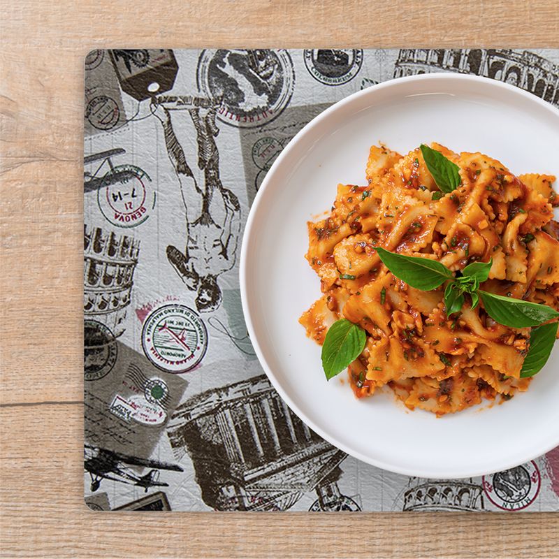 Jogo Americano Itália Nada como um jogo americano para deixar a sua mesa mais bonita e elegante para a hora da refeição.Feito com material flexível, impermeável, resistente e fácil de limpar. Contém 6 Unidades. DIMENSÕES: Largura: 29cm Altura: 0,1cm Comprimento: 44cm Limpe com um pano úmido ou lave com água e sabão neutro. Somos fabricantes, por isso o melhor preço para essa matéria prima. Um produto Idealiza Comercio de Utilidades