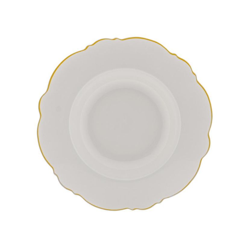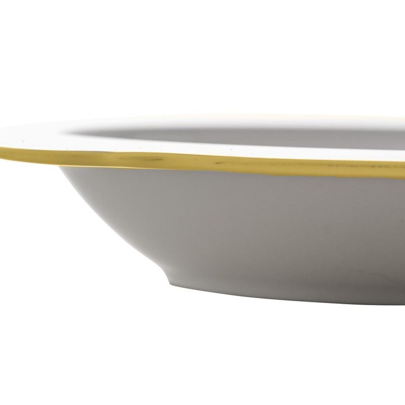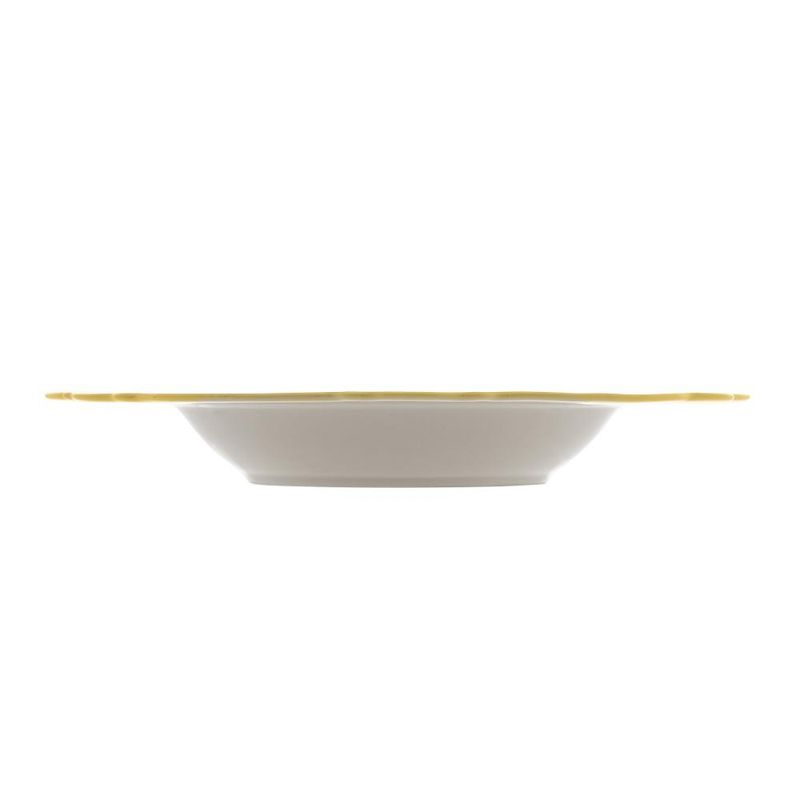 6 Pratos Fundos Wolff Maldivas de Porcelana Fio de Ouro 23cmTransforme suas refeições em experiências extraordinárias com o Conjunto de 6 Pratos Fundos de Porcelana Maldivas Branco com Fio de Ouro da Wolff. Cada prato é mais do que uma peça, é uma obra-prima que eleva a apresentação e o sabor das suas criações culinárias. Características que Encantam: Design Exclusivo: Os pratos apresentam um design sofisticado, com detalhes em fio de ouro que adicionam um toque de luxo à sua mesa. Dimensões Perfeitas: Com 23cm de diâmetro e 3,5cm de altura, esses pratos fundos proporcionam o espaço ideal para servir suas deliciosas receitas. Porcelana Premium: Fabricados com porcelana de alta qualidade, esses pratos não apenas impressionam visualmente, mas também resistem ao uso diário. Elegância Duradoura: O fio de ouro não apenas destaca o design, mas também permanece brilhante ao longo do tempo, garantindo durabilidade e elegância contínuas. Adicione um toque de requinte às suas refeições diárias ou celebrações especiais com o Conjunto Maldivas de Pratos Fundos. Sinta a diferença de saborear suas criações em um ambiente de puro luxo. Aprecie cada bocado, celebre cada momento - Faça do Conjunto Maldivas a escolha para elevar suas experiências à mesa. Contém: 6 PratosForno: NãoFogão: NãoMedidas Produto: Altura 3,50cm x Largura 23,50cm x Comprimento 23,50cmPeso: 2,22KgCor: BrancoMaterial: PorcelanaLavar com detergente neutro, esponja macia e secar imediatamente. Não utilizar outros produtos químicos.
