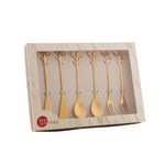 6 Talheres Wolff Leaves de Aço Inox DouradoO Conjunto de 6 Talheres da Wolff é a expressão máxima de elegância e praticidade. Cada talher é uma obra-prima que combina a durabilidade do aço inoxidável com o charme dourado do design Leaves, proporcionando uma experiência refinada em cada refeição.Aço Inox DurávelOs talheres são fabricados em aço inoxidável de alta qualidade, garantindo resistência, durabilidade e facilidade na limpeza.Design Leaves DouradoInspirados na beleza das formas naturais, os talheres apresentam detalhes dourados que adicionam um toque de sofisticação à sua mesa.Elegância FuncionalAlém de sua funcionalidade essencial, esses talheres trazem um charme único à hora de servir, contribuindo para uma apresentação impecável.Conjunto CompletoCom 6 talheres no conjunto, você tem todas as peças necessárias para uma refeição completa e bem-servida.O Conjunto 6 Talheres de Aço Inox Leaves Dourado da Wolff é a escolha refinada para quem busca unir sofisticação e praticidade em cada detalhe à mesa.Wolff - A melhor experiência em receber, servir e decorar.Contém: 2 Espátulas para Chá 2 Garfos para Chá 2 Colheres para CháLava Louça: NãoMicroondas: NãoForno: NãoFogão: NãoFreezer: NãoMedidas Produto: Altura 2,50cm x Largura 18,50cm x Comprimento 24,00cmPeso: 0,06KgCor: DouradoMaterial: Aço InoxLavar com detergente neutro, esponja macia e secar imediatamente. Não utilizar outros produtos químicos.