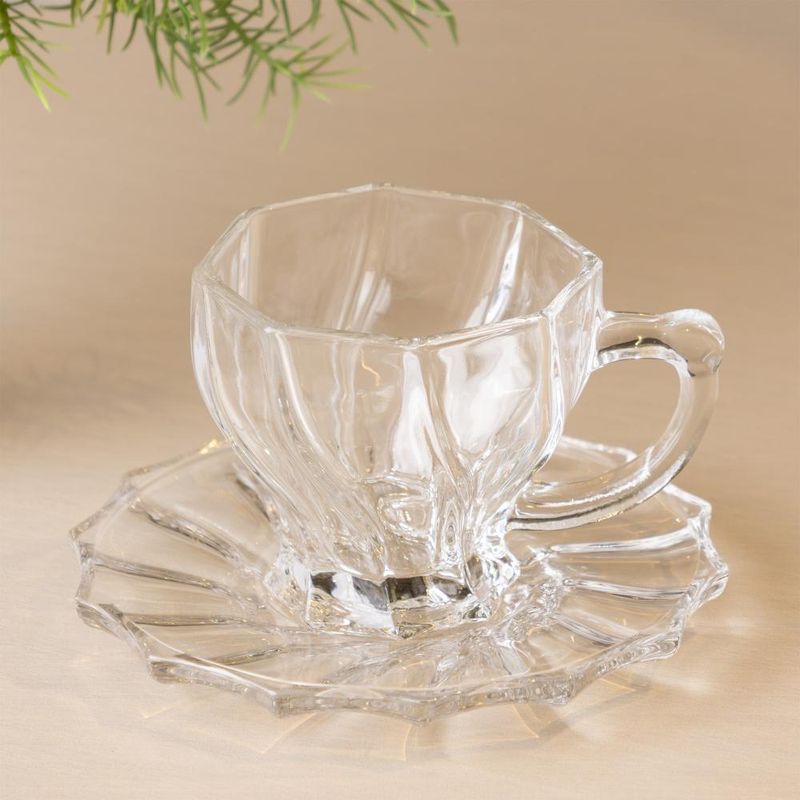 6 Xícaras de Chá com Pires Twist 190ml Vidro Wolff