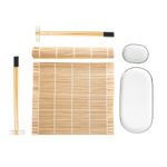 8 Peças para Sushi Wolff de Bambu TsuruEm sua cozinha, cada refeição é uma celebração da arte culinária, uma experiência que une sabores, texturas e tradições. Cada detalhe é cuidadosamente escolhido para criar momentos memoráveis à mesa.Descubra por que o Conjunto 8 Peças para Sushi Tsuru da Wolff é essencial para suas experiências gastronômicasTradição e AutenticidadeFeito com bambu de alta qualidade, este conjunto é uma homenagem à tradição japonesa. Seu design elegante e minimalista reflete a autenticidade e a simplicidade da culinária japonesa.Versatilidade na PreparaçãoCom o conjunto de 8 peças, você tem tudo o que precisa para preparar e servir sushi em grande estilo. Desde a esteira de bambu para enrolar até os hashis e tigelas, cada elemento é projetado para facilitar e aprimorar sua experiência na cozinha.Durabilidade e SustentabilidadeO bambu é conhecido por sua durabilidade e resistência, tornando este conjunto uma escolha sustentável e ecologicamente correta. Além disso, a sua beleza natural adiciona um toque de harmonia à sua mesa.Encante seus ConvidadosSurpreenda seus convidados com uma apresentação impecável de sushi e sashimi. Este conjunto não apenas facilita a preparação, mas também eleva a experiência gastronômica, criando memórias inesquecíveis à mesa.Ao escolher o Conjunto 8 Peças para Sushi de Bambu Tsuru da Wolff, você investe em qualidade, tradição e elegância para suas experiências culinárias japonesas.WOLFF. A melhor experiência em receber, servir e decorar!Contém: 2 Pares de Hashi2 Suportes para Hashi2 Pratos2 EsteirasForno: NãoFogão: NãoMedidas Produto: Altura 2,50cm x Largura 24,50cm x Comprimento 27,50cmPeso: 0,48KgCor: PretoMaterial: BambuLavar com detergente neutro, esponja macia e secar imediatamente.