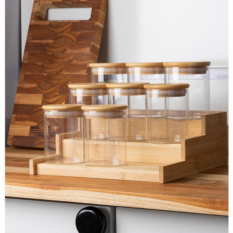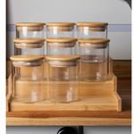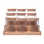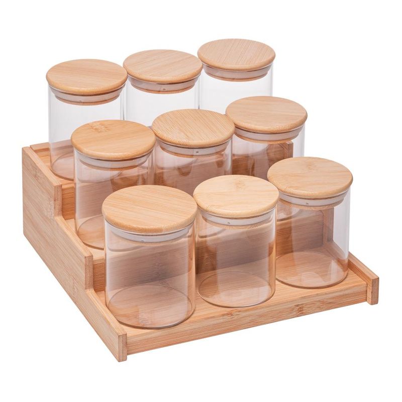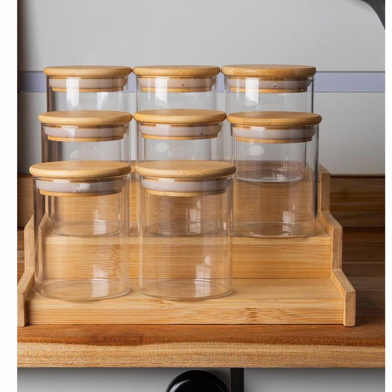 9 Porta Mantimentos Wolff com Tampa e Suporte de Bambu VidroO Conjunto 9 Porta-Mantimentos com Tampa e Suporte de Bambu 22,5x22x8,5cm Vidro Borossilicato - Wolff é a solução perfeita para quem busca organização e estilo em sua cozinha. Com materiais de alta qualidade e design sofisticado, ele tem uma funcionalidade e avançada em um único produto.O Conjunto 9 Porta-Mantimentos com Tampa e Suporte de Bambu 22,5x22x8,5cm Vidro Borossilicato - Wolff é a solução perfeita para quem busca organização e estilo em sua cozinha. Com materiais de alta qualidade e design sofisticado, ele tem uma funcionalidade e avançada em um único produto.Organização CompletaCom 9 recipientes, é ideal para armazenar diferentes tipos de alimentos como grãos, especiarias, cereais e muito mais.Materiais PremiumO vidro borossilicato garante resistência e preservação da qualidade dos alimentos, enquanto o bambu traz um toque natural e sustentável.Design CompactoO suporte otimiza o espaço, deixando sua cozinha organizada e visualmente harmoniosa.Modo de uso/lavagemUtilize os porta-mantimentos para armazenar alimentos secos, mantendo-os frescos e protegidos.Limpe os recipientes com água morna e sabão neutro. As tampas e o suporte de bambu devem ser limpos com um pano úmido e seco imediatamente.Transforme sua cozinha em um ambiente organizado e cheio de charme com o Conjunto 9 Porta-Mantimentos com Tampa e Suporte de Bambu 22,5x22x8,5cm Vidro Borossilicato - Wolff Wolff - Construindo memórias e eternizando momentos..Contém: 9 Porta Mantimentos com Tampa1 SuporteMedidas Produto: Altura 8,50cm x Largura 22,00cm x Comprimento 22,50cmPeso: 1,35KgLavar com detergente neutro, esponja macia e secar imediatamente.