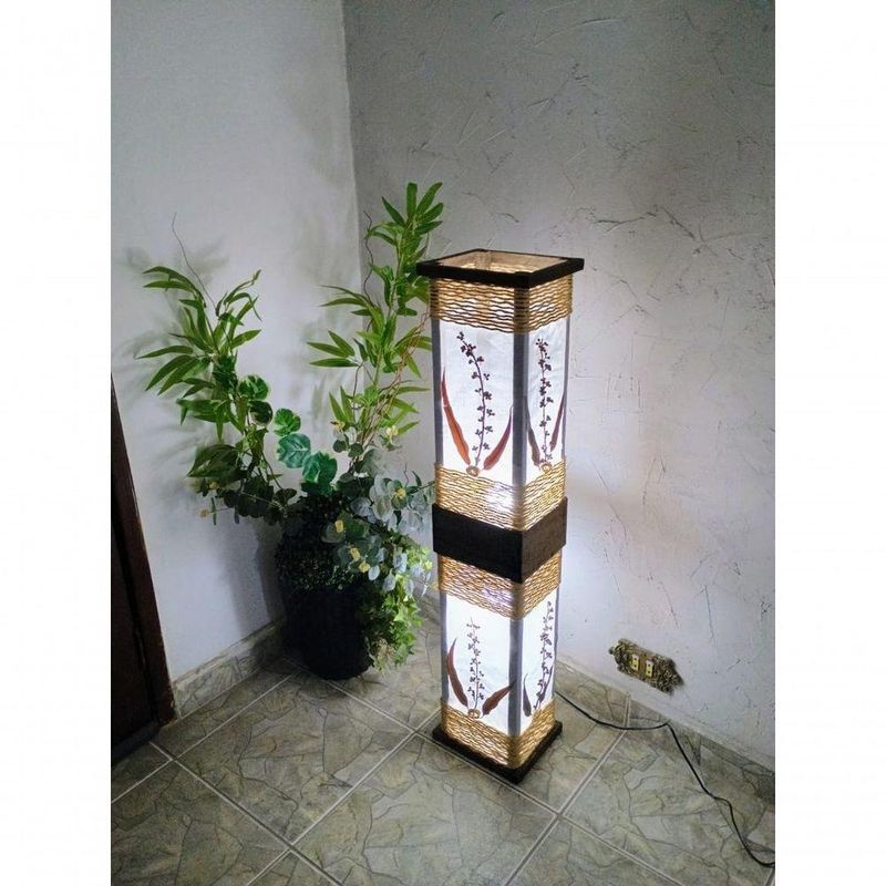 Abajur De Chão Piso Rústico Corda Com Folhagens 1 Metro Altura Sala Quarto Madeiraabajur de chão rústico de 1 metro feito em madeira de reflorestamento, com excelente acabamento em cordas de sisal e folhagens naturais sobre o tecido morim. Este abajur foi projetado para iluminar ambientes, sendo ideal para salas e quartos. Com um design único, o apoio do soquete da lâmpada fica escondido, evitando áreas de penumbra, pois utiliza duas lâmpadas, proporcionando uma iluminação intensa e homogênea. É uma peça que transmite tranquilidade, sendo altamente recomendada para comércios como restaurantes e SPAs. Quando desligado, o abajur também serve como uma peça decorativa de bom gosto.Características:- Fabricante: fabricação própria.- Material: madeira de reflorestamento, sisal, morim e folhagens naturais secas.- Acabamento: pintura em Betume com aspecto envelhecido/rústico.- Lâmpada: utiliza lâmpada comum ou LED 110 ou 220 volts.- Quantidade de Lâmpadas: 2 (não inclusas).- Soquete: tipo E-27 de cerâmica.- Voltagem: de acordo com a lâmpada utilizada.- Dimensões: 18x22x100 cm (comprimento x largura x altura).- Peso: Acompanha 1,5 metro de cabo com plug e interruptor. Embalado em plástico-bolha e revestido por papelão. Nossas peças são artesanais e feitas sob , podendo ter pequenas variações devido ao processo artesanal.