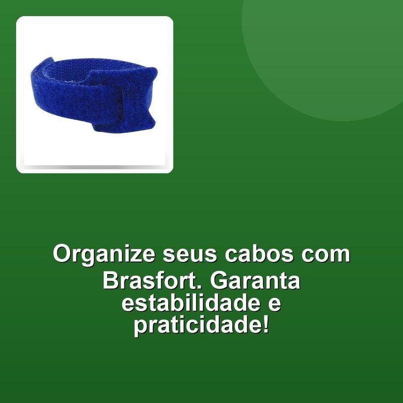 Abraçadeira de Velcro Brasfort Autofixável 14X330MM para Organização de Cabos Reutilizável Conjunto com 5A Abraçadeira Velcro Brasfort Autofixável 14x330mm é ideal para organização e fixação de cabos, fios e diversos objetos. Com sistema autofixável e reutilizável, oferece praticidade e bom custo-benefício no dia a dia. Suas dimensões de 14x330mm proporcionam ajuste seguro e estável, mantendo tudo mais organizado. Pode ser usada em ambientes domésticos, escritórios ou oficinas, em diferentes aplicações. A marca Brasfort oferece este conjunto com 5 peças e garantia de 3 meses para maior tranquilidade.Vantagens e diferenciais Organização prática ideal para cabos, fios e pequenos objetos. Sistema autofixável permite ajuste fácil e reutilização constante. Dimensões 14x330mm garantem fixação segura e estável dos itens. Conjunto com 5 peças oferece versatilidade e bom custo-benefício. Uso versátil indicado para casa, escritório e oficinas.Especificações Técnicas Marca: Brasfort Tipo de produto: Abraçadeira de velcro Modelo: Abraçadeira Velcro Brasfort Autofixável 14x330mm Principais características: Autofixável, reutilizável, para organização de cabos e fios Dimensões: 14x330mm Conteúdo da embalagem: 5 abraçadeiras de velcro 14x330mm Garantia: 3Observações importantes As cores do produto podem variar de acordo com a calibração e resolução do monitor ou tela utilizada. As imagens são meramente ilustrativas. O produto real pode apresentar pequenas variações de tonalidade, formato ou acabamento.