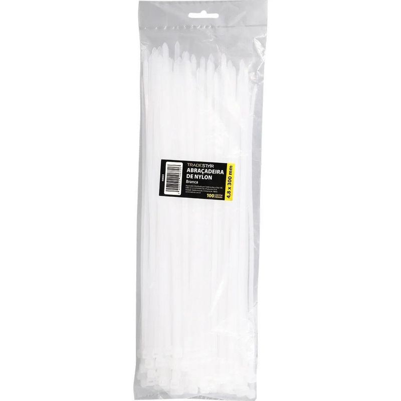 Abraçadeira Nylon 7,6 X 250 Mm Branca Com 50 Peças TradestarAbraçadeira Plástica Tradestar 7,6 x 250 mm Branca 50 UnidadesA Abraçadeira Plástica Tradestar 7,6 x 250 mm Branca é uma solução prática e eficiente para quem busca organizar, fixar ou agrupar cabos, fios, mangueiras, tubos e diversos outros itens de forma rápida e segura. Ideal para uso residencial, comercial e industrial, esse modelo é fabricado em nylon de alta qualidade, proporcionando resistência e durabilidade, mesmo em condições de uso contínuo.Este modelo é amplamente utilizado em instalações elétricas, montagem de painéis, organização de redes de informática, montagem de equipamentos, jardinagem e até mesmo em projetos de bricolagem. Sua versatilidade faz com que seja indispensável tanto para profissionais quanto para usuários domésticos que buscam uma solução simples, mas altamente funcional para manter tudo no lugar.As abraçadeiras Tradestar são conhecidas por seu acabamento uniforme e resistência mecânica, permitindo que suportem a tração necessária para manter os objetos firmemente presos. Apesar de serem leves e fáceis de manusear, garantem uma fixação estável e confiável, evitando deslocamentos ou solturas indesejadas.O pacote com 50 unidades oferece ótimo custo-benefício, permitindo que você tenha sempre à disposição a quantidade necessária para diferentes projetos e demandas. Seja para uso eventual ou para trabalhos que exigem grande quantidade de fixadores, este conjunto garante praticidade e economia.Especificações- Material: Nylon- Dimensões: 7,6 (largura) x 250 mm (comprimento)- Cor: Branca- Sistema de Fechamento: Trava por catraca- Indicação de Uso: Fixação e organização de cabos, fios e objetos diversosItens inclusos- 01 pacote com 50 abraçadeiras plásticas Tradestar 7,6 x 250 mm BrancaGarantia- 03 meses com o Fabricante NA