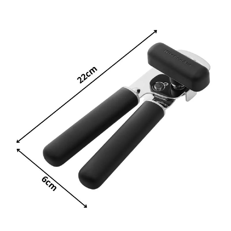 O Abridor de Latas e Garrafas da Coleção Clássica KitchenAid combina resistência, praticidade e um design sofisticado para facilitar o dia a dia na cozinha. Sua lâmina em aço inoxidável e o corpo robusto garantem desempenho eficiente e durável, enquanto o cabo ergonômico em ABS, com acabamento fosco, oferece pegada firme, confortável e higiênica.Simples de usar, ele permite abrir latas com segurança ao girar a parte móvel após o encaixe, e também funciona como abridor de garrafas, bastando posicionar e pressionar levemente.Durável, higiênico e fácil de limpar, é resistente ao calor de até 232°C/450°F e pode ser levado à lava-louças — um item indispensável que agrega elegância e funcionalidade à sua cozinha. - Destaques:• Lâmina em aço inox durável e eficiente• Cabo ergonômico em ABS com acabamento fosco• Função 2 em 1: abre latas e garrafas• Fácil de usar, seguro e prático• Resistente ao calor até 232°C/450°F• Apto para lava-louças• Design moderno e funcional - Especificações:• Material: Aço inox e ABS livre de BPA• Comprimento: 22cm• Largura: 6cm• Profundidade: 5cm• Peso: 269g• Cor: Preto - Observações:• Lavar antes do primeiro uso• Usar esponja macia e detergente neutro• Enxaguar bem e secar imediatamente• Evitar quedas ou impactos• Pode ser levado à lava-louças