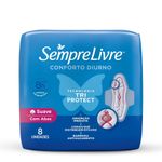 Absorvente Sempre Livre Tri Protect Suave com Abas 8 Unidades Proteção tripla para sua rotina com conforto, segurança e confiança! O Absorvente Sempre Livre Tri Protect Suave oferece cuidado diário com máxima absorção e ajuste perfeito ao corpo. O Absorvente Sempre Livre Tri Protect Suave com Abas foi desenvolvido para proporcionar proteção tripla contra vazamentos, oferecendo segurança em todas as direções. Conta com um sistema exclusivo de canais que direcionam o fluxo para o centro do absorvente, além de um centro elevado que ajuda na absorção mais rápida. O toque suave da cobertura oferece conforto à pele, enquanto as abas garantem melhor fixação na calcinha, prevenindo deslocamentos e aumentando a segurança durante o uso. Benefícios Proteção tripla contra vazamentos; Toque suave e confortável; Com abas que proporcionam melhor fixação; Formato anatômico que se adapta ao corpo; Ideal para fluxos moderados a intensos; Embalagem com 8 unidades, prática para o dia a dia. Modo de Uso Retire o absorvente da embalagem individual, remova o papel adesivo e fixe-o no centro da calcinha. Dobre as abas e cole-as na parte externa para garantir melhor fixação. Troque o absorvente a cada 4 a 6 horas ou conforme a necessidade. Precauções e Advertências Troque o absorvente com frequência para evitar odores e proliferação de bactérias; Descarte o absorvente usado no lixo, nunca no vaso sanitário; Em caso de irritação ou desconforto, suspenda o uso e consulte um profissional de saúde; Armazene em local fresco, seco e ao abrigo da luz.
