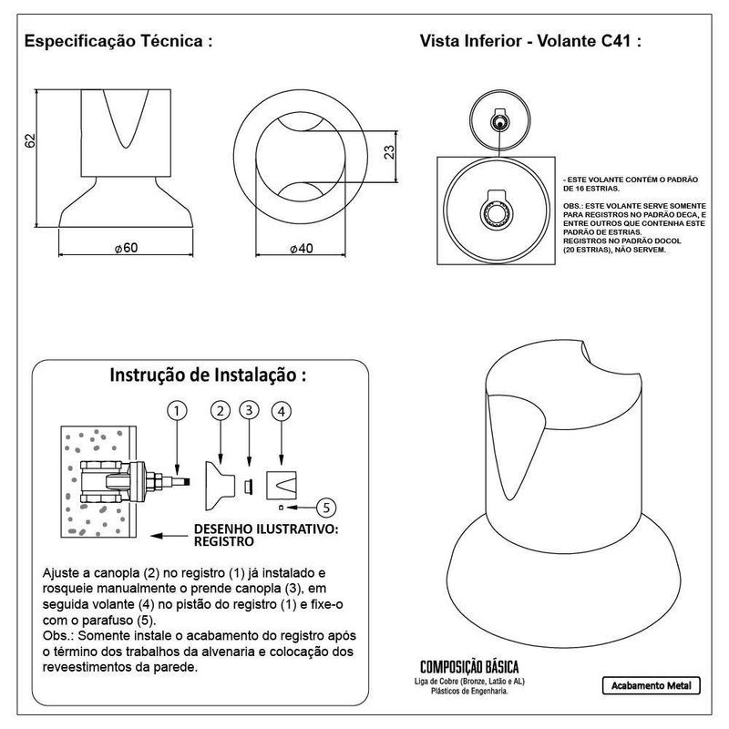 Acabamento Registro Grafite Preto Fosco Padrão Deca Pressão Ou Gaveta Metal LuxoAcabamento Colorido para Registros de Pressão e Gaveta Padrão Deca 16 estrias Grafite / Preto Fosco- Melhor acabamento colorido para registros do mercado.- Material resistente e de alta durabilidade.- Não enferruja, não descasca e não oxida.- Proporciona elegância ao seu ambiente.- 5 anos de garantia- A COR DOS NOSSOS PRODUTOS NÃO É PINTURA EPOXI, PINTURA É UM PROCESSO BAIXA QUALIDADE E DURABILIDADE PARA METAIS SANITÁRIOS, TENHA CUIDADO A ANUNCIOS QUE OFERECEM ESSE TIPO DE PRODUTO A BAIXOS PREÇOS!!!!!- Nossa cor do acabamento é resultado de um processo eletroquímico de elevada tecnologia e qualidade.COMPATÍVEL COM:Deca, Sigma Metais, Bognar Metais, Kelly Metais, Esteves, Hidrofix, Furkin, Forusi, Stoc Metais, Onell entre outros que seguem o mesmo padrão Deca.Este acabamento para registro de pressão e gaveta é compatível com os tamanhos de ½”, ¾” e 1” polegada, estria Deca.NÃO É COMPATÍVEL COM:Docol e Fabrimar ou qualquer outro fabricante que segue o padrão diferente de DecaSOBRE O PRODUTO.É uma ótima opção para quem procura um produto de extrema qualidade. Além disso, seu designer moderno o torna um lindo objeto decorativo. É fabricado com materiais de alta qualidade. Os acabamentos de registro da SHOPHIDRAULICA proporcionam um visual mais elegante ao seu ambiente, a cor que faltavaFabricado em metal, possui alta resistência a riscos e a corrosões, conservando a beleza do produto por muito mais tempo. Deixe o ambiente bonito e elegante, invista neste acabamento e tenha um produto de qualidade.Dê um novo Requinte a sua casa! Utilize nossos acabamentos de registro padrão DECA e você terá uma nova experiência em seus registros com um Design Moderno e InovadoESPECIFICAÇÕES TÉCNICAS DO PRODUTO E GARANTIA.- MATERIAL: 100% METAL- ACABAMENTO: DESIGN SOFISTICADOS E DE ALTO PADRÃO.- BITOLAS: 1/2, 3/4 e 1.- PADRÃO DA ESTRIA: PADRÃO DECA.- FÁCIL INSTALAÇÃOTodas as nossas peças passam por um rigoroso teste de qualidade antes de entrarem na embalagem e serem enviadas.Acabamento Colorido para Registros de Pressão e Gaveta Padrão Deca 16 estrias Grafite / Preto Fosco- Melhor acabamento colorido para registros do mercado.- Material resistente e de alta durabilidade.- Não enferruja, não descasca e não oxida.- Proporciona elegância ao seu ambiente.- 5 anos de garantia- A COR DOS NOSSOS PRODUTOS NÃO É PINTURA EPOXI, PINTURA É UM PROCESSO BAIXA QUALIDADE E DURABILIDADE PARA METAIS SANITÁRIOS, TENHA CUIDADO A ANUNCIOS QUE OFERECEM ESSE TIPO DE PRODUTO A BAIXOS PREÇOS!!!!!- Nossa cor do acabamento é resultado de um processo eletroquímico de elevada tecnologia e qualidade.COMPATÍVEL COM:Deca, Sigma Metais, Bognar Metais, Kelly Metais, Esteves, Hidrofix, Furkin, Forusi, Stoc Metais, Onell entre outros que seguem o mesmo padrão Deca.Este acabamento para registro de pressão e gaveta é compatível com os tamanhos de ½”, ¾” e 1” polegada, estria Deca.NÃO É COMPATÍVEL COM:Docol e Fabrimar ou qualquer outro fabricante que segue o padrão diferente de DecaSOBRE O PRODUTO.É uma ótima opção para quem procura um produto de extrema qualidade. Além disso, seu designer moderno o torna um lindo objeto decorativo. É fabricado com materiais de alta qualidade. Os acabamentos de registro da SHOPHIDRAULICA proporcionam um visual mais elegante ao seu ambiente, a cor que faltavaFabricado em metal, possui alta resistência a riscos e a corrosões, conservando a beleza do produto por muito mais tempo. Deixe o ambiente bonito e elegante, invista neste acabamento e tenha um produto de qualidade.Dê um novo Requinte a sua casa! Utilize nossos acabamentos de registro padrão DECA e você terá uma nova experiência em seus registros com um Design Moderno e InovadoESPECIFICAÇÕES TÉCNICAS DO PRODUTO E GARANTIA.- MATERIAL: 100% METAL- ACABAMENTO: DESIGN SOFISTICADOS E DE ALTO PADRÃO.- BITOLAS: 1/2, 3/4 e 1.- PADRÃO DA ESTRIA: PADRÃO DECA.- FÁCIL INSTALAÇÃOTodas as nossas peças passam por um rigoroso teste de qualidade antes de entrarem na embalagem e serem enviadas.