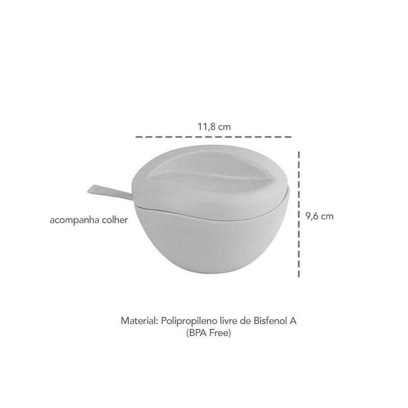 Açucareiro com colher e tampa. O açucareiro da UZ alem de design arrojado, possuem superficie interna lisa que facilita a lavagem. Sao fabricados em material altamente resistente, atoxico, livre de Bisfenol A (BPA Free) e 100% reciclavel. Contem: 1 Açucareiro Medidas: 9,6 x 15 x 11,8 cm Acompanha 1 colher Material: Plastico Polipropileno