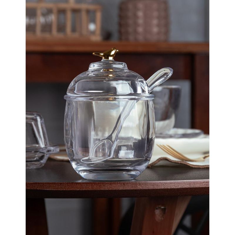 Açucareiro Wolff Golden Bird de Cristal com Colher 150mlA Meleira com Pegador e Tampa Golden Bird da Wolff é o acessório perfeito para adicionar elegância e funcionalidade à sua cozinha.Design ExclusivoCom detalhes em cristal ecológico, esta meleira oferece um visual refinado que complementa qualquer decoração.Praticidade com EstiloEquipada com um pegador para facilitar o uso, proporciona uma experiência de servir mel sem complicações.Qualidade DuradouraFeita com cristal ecológico de alta qualidade, é resistente e fácil de limpar, garantindo durabilidade e beleza por muitos anos.Ideal para PresentearPerfeita para presentear amigos e familiares em ocasiões especiais, oferecendo um toque de luxo e sofisticação à mesa.Cada uso da Meleira Golden Bird da Wolff transforma simples momentos na cozinha em experiências memoráveis. Celebre com elegância e funcionalidade, elevando o sabor e o estilo de suas refeições.WolffConstruindo memórias, eternizando momentos.Contém: 1 Açucareiro1 ColherLava Louça: NãoMicroondas: NãoForno: NãoFogão: NãoFreezer: NãoMedidas Produto: Altura 12,00cm x Largura 8,50cm x Comprimento 8,50cmPeso: 0,45KgCor: IncolorMaterial: Cristal EcológicoLavar com detergente neutro, esponja macia e secar imediatamente.