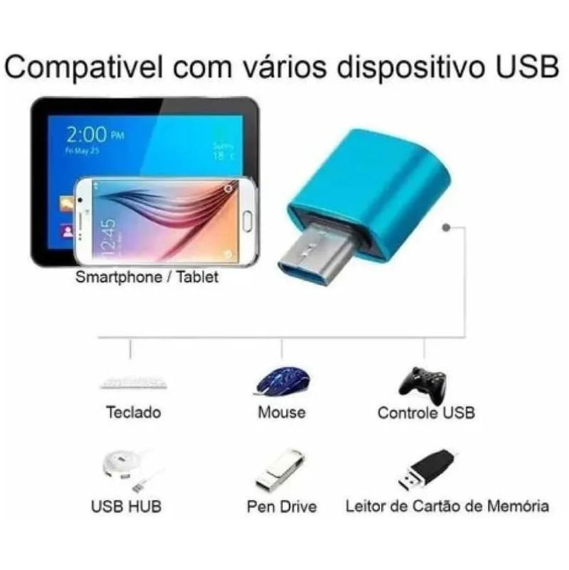 Atenção: não serve em celulares com entrada micro usbPlug adaptador usb tipo c macho para usb fêmeaVerifique se é compatível com seu celular, verifique no manual do seu aparelho qual entrada éFunciona para utilização de: mouse, teclado, joystick, pen drive, microfone, etc ...Transfere arquivos do smartphone para o pen drive, para android é plug and play, transfere vídeos, fotos, etc ... Pelo cabo de dados usb tipo c (cabo somente de energia não transfere)Compatível com todos os smartphones com tecnologia otg - procure um app de nome usb otg checker e instale no seu aparelho para saber se tem essa tecnologia. Além disso, procure no youtube como ativar essa função no seu aparelho.Composição: plástico e metalItens inclusos:1 adaptador otg tipo c para usb