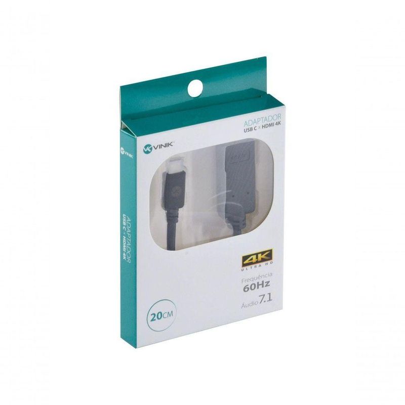 Adaptador Usb Tipo C X Hdmi 4k 20cm - Achdmi-20ADAPTADOR USB TIPO C X HDMI 4K 20CM - ACHDMI-20 A linha Tipo C (Type C) é a mais recente aplicação dos padrões USB. Praticamente todos novos dispositivos lançados no mercado recentemente contam com pelo menos, uma porta tipo C, como Smartphones, notebooks, computadores, pendrives, etc. Afinal, o que é o Tipo C? O novo padrão USB tipo C permite carregar e transferir dados entre dispositivos de forma muito mais rápida, já que trata-se de um cabo com maior capacidade. Seu grande diferencial que é a entrada tipo C é bidirecional, ou seja, pode ser encaixada de qualquer lado. Este adaptador permite conectar um emissor de vídeo/áudio HDMI (como uma placa de vídeo, um aparelho de DVD, blu-ray etc) à um receptor Type C como um monitor ou TVs que possuam esta conexão. Dados técnicos: Conectores: USB Tipo C x HDMI fêmea Comprimento: 20cm Cor: Preto Material do revestimento: PVC emborrachado Resolução de saída: 3840x2160 px - 4K Frequência: 60Hz Áudio: 7.1 Obs: Verifique a compatibilidade do cabo HDMI, para transmitir nesses padrões é necessário ser um cabo HDMI 2.0 ou superior.ADAPTADOR USB TIPO C X HDMI 4K 20CM - ACHDMI-20 A linha Tipo C (Type C) é a mais recente aplicação dos padrões USB. Praticamente todos novos dispositivos lançados no mercado recentemente contam com pelo menos, uma porta tipo C, como Smartphones, notebooks, computadores, pendrives, etc. Afinal, o que é o Tipo C? O novo padrão USB tipo C permite carregar e transferir dados entre dispositivos de forma muito mais rápida, já que trata-se de um cabo com maior capacidade. Seu grande diferencial que é a entrada tipo C é bidirecional, ou seja, pode ser encaixada de qualquer lado. Este adaptador permite conectar um emissor de vídeo/áudio HDMI (como uma placa de vídeo, um aparelho de DVD, blu-ray etc) à um receptor Type C como um monitor ou TVs que possuam esta conexão. Dados técnicos: Conectores: USB Tipo C x HDMI fêmea Comprimento: 20cm Cor: Preto Material do revestimento: PVC emborrachado Resolução de saída: 3840x2160 px - 4K Frequência: 60Hz Áudio: 7.1 Obs: Verifique a compatibilidade do cabo HDMI, para transmitir nesses padrões é necessário ser um cabo HDMI 2.0 ou superior.