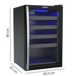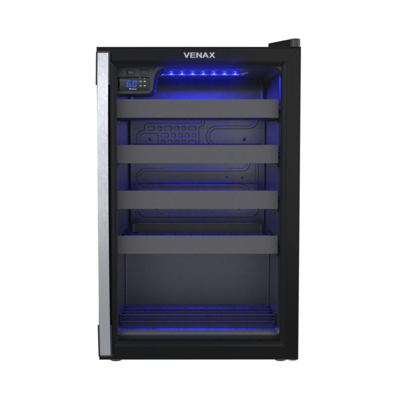 Adega Climatizada Venax Piubella 100 82L 24 Garrafas Preto 220VApresentamos a sofisticada adega Venax Piubella 100, que combina um design elegante com funcionalidade avançada. Com controle digital de temperatura variando entre 6°C e 20°C, iluminação interna em LED, e capacidade para 24 garrafas, esta adega oferece o ambiente ideal para armazenar seus vinhos.Características:Marca: VenaxRef.: 7835Modelo: PiubellaLinha: 100Tensão: 220VTipo: AdegaPotência: 145WVolume Líquido: 82LFrequência: 60HzTipo de Montagem: PisoIsolamento Térmico: PoliuretanoControlador de Temperatura: Digital, Regulável (6°C a 20°C)Iluminação Interna: LED AzulPorta: Vidro Duplo (LOW-E)Aquecimento da Porta: NãoPuxador da Porta: AlumínioAbertura da Porta: Esquerda para DireitaTrava de Abastecimento: NãoDegelo: NaturalDreno: TraseiroRecipiente de Degelo: SimPrateleiras: 4 Deslizantes e 1 FixaEvaporador: Sem Ar ForçadoSistema de Refrigeração: CompressorGás Refrigerante: R134aPés: Frontais Reguláveis e Traseiros com RoleteGabinete Interno: PSAIGabinete Externo: Aço Revestido com Pintura EletrostáticaCapacidade de Armazenamento: 24 Garrafas / Ø Máx. 90mmDimensões Aproximadas do Produto (LxAxP): 49,5 cm x 84,5 cm x 61,5 cmPeso Líquido: 33,5 kgGarantia: 12 meses contra defeitos de fabricação, de acordo com as normas do fabricante.