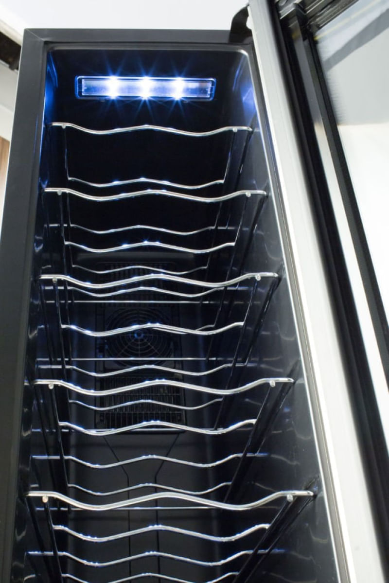 A Adega de Vinhos Electrolux ACB08 para 8 garrafas possui display de temperatura externo, que permite controlar a temperatura sem ter que abrir a adega desnecessariamente. Seu sistema de iluminação interna com LEDs conta com pequenos emissores de luz, que não danificam as características originais do vinho. É produzida com material altamente durável, com acabamento em alumínio escovado. Compacta e elegante, essa adega é ideal para qualquer espaço da sua casa.