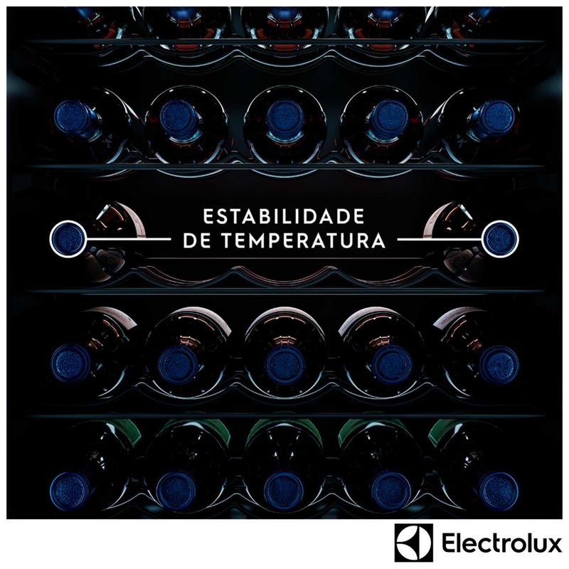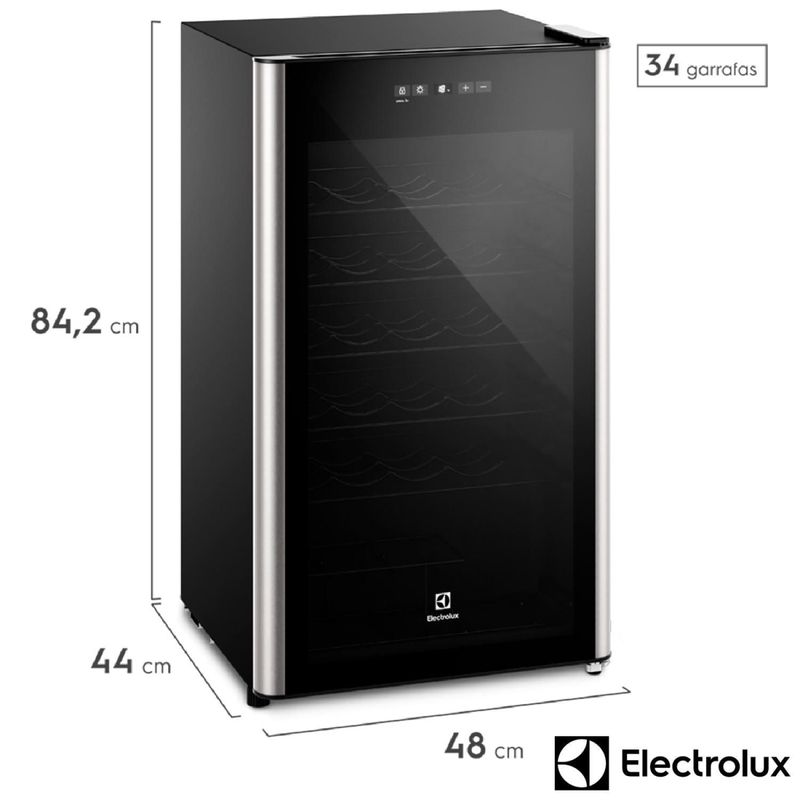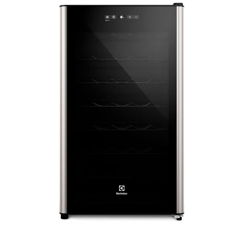 Para apreciadores de vinhos, a Adega Electrolux WSF34 tem a temperatura ideal para seus melhores momentos. Acompanhado de um design único, mantenha seus rótulos protegidos com sofisticação. Possui Estabilidade de Temperatura que preserva os vinhos entre 5ºC e 18ºC com um simples toque no Painel Digital e ainda caso precise, evite alterações nas configurações realizadas com a função bloqueio. Perfeita para guardar até 34 garrafas, visualize seus rótulos sem abrir a porta com a iluminação de LED interna que também ajuda a manter o sabor e frescor originais do seu vinho. Destaques Estabilidade de Temperatura Tenha sempre os seus vinhos na temperatura ideal, preservando o sabor e o frescor. Com a porta de vidro duplo e compressor a temperatura se mantém estável e você pode ajustar conforme sua necessidade entre 5ºC a 18ºC. Grande Capacidade para Garrafas Armazene e organize melhor seus vinhos, para até 24 ou 34 garrafas conforme modelo. Luz de LED interna Pequenos emissores de luz que preservam as características originais do vinho. Permite também uma melhor visualização do seu estoque e elimina a necessidade de abrir a porta sem impactar na temperatura ideal. Controle Digital Controle a temperatura sem abrir a porta com um simples toque e ainda, com a função de bloqueio evite alterações nas configurações escolhidas. Prateleiras Prateleiras para organizar melhor as suas garrafas. Características Tipo: Compressor Capacidade de Garrafas: 34 Painel Eletrônico: Sim Alcance de Temperatura: 5°C a 18°C Prateleiras: 04 Controle de Temperatura Luz Interna: LED Especificações Técnicas Modelo: WSF34 Material da Porta: Vidro duplo / VCM Potência: 60 W Frequência: 60 Hz Voltagem: 110V / 220V (Não é bivolt) Cor: Preto EAN: 7909569413814 (110V) / 7909569413821 (220V) Garantia: 12 meses Dimensões e Peso Itens Inclusos 01 Adega Manual de Instruções