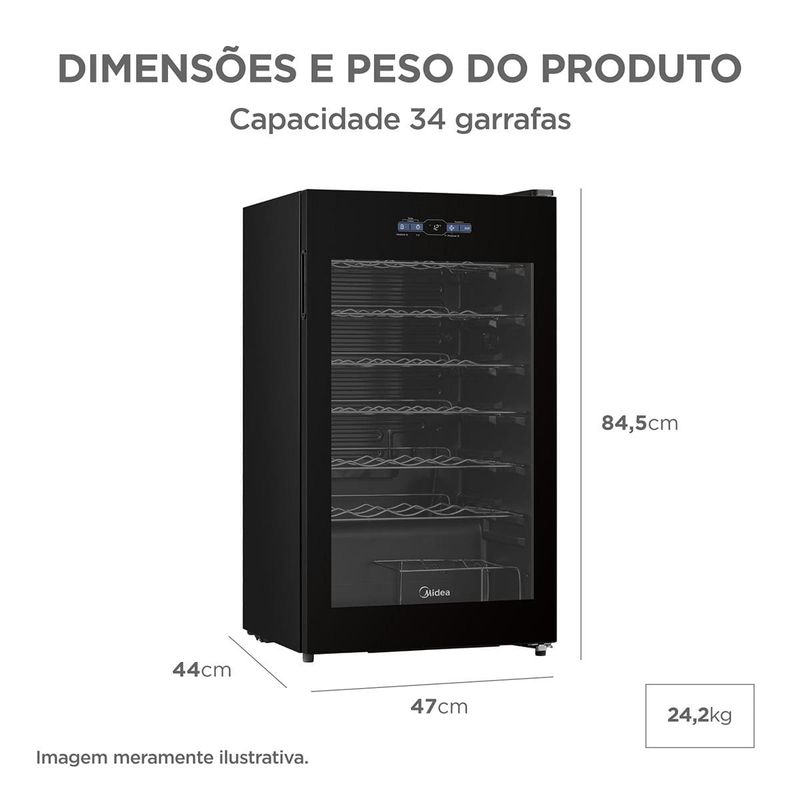 Adega Midea 34 Garrafas MDRW150FGGGL3: seu vinho sempre pronto para brindar os bons momentos! A Adega Midea 34 Garrafas MDRW150FGGGL3 une design moderno, tecnologia avançada e total praticidade no cuidado com seus vinhos. Porta de Vidro com Low-E A Porta de Vidro Duplo com Low-E reduz a incidência de raios UV, preservando a temperatura adequada e garantindo a qualidade das bebidas. Painel Touch O Painel Touch permite ajustar a temperatura entre 5°C e 18°C com precisão. Suas prateleiras cromadas removíveis oferecem resistência, ergonomia e organização para até 34 garrafas. Tecnologia Inverter A Tecnologia Inverter proporciona resfriamento mais rápido, estabilidade térmica, baixo ruído e menor vibração. Conectividade SmartHome A adega também conta com Conectividade Avançada, permitindo controle total via aplicativo SmartHome ou comando de voz com Alexa e Google Assistant. Monitore temperatura, estoque, rótulos, datas e muito mais direto do smartphone. Tecnologia Inverter: resfriamento rápido, estabilidade térmica e economia de energia. Conectividade via SmartHome: controle de temperatura, estoque e inventário no app. Comandos de voz via Alexa e Google Assistant. Vidro Duplo Low-E: mais isolamento e redução de raios UV. Flexi-Volt: compatível com 110V e 220V. Prateleiras cromadas ergonômicas e removíveis. Pés niveladores e trava de segurança. Puxador embutido e iluminação interna. Gás ecológico R600a. Design harmônico com cervejeira. Conheça também outros produtos com a tecnologia e inovação Midea. Confira!