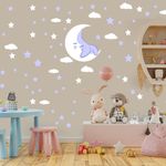 Adesivo De Parede Infantil Lua Estrelas E Nuvens Titulo Estrelas RoxasAdesivo De Parede Infantil Lua Estrelas e NuvensESSE KIT CONTÉM:- 1 Lua Mãe e Estrela Filho (a);- 6 Estrelas de 9cm;- 15 Estrelas de 7cm;- 16 Estrelas de 6cm;- 55 Estrelas de 4cm;- 4 Nuvens de 12cm X 5cm;- 3 Nuvens de 11cm X 5cm;- 3 Nuvens de 10cm X 5cm;MEDIDAS:Kit 1 folha com:Folha inteira: 60cm de largura X 70cm de comprimento;- Lua Mãe e Estrela Filho(a): 40cm de largura X 42cm de comprimento;- Estrelas Amarelas Maiores: 9cm de largura X 9cm de comprimento;- Estrelas Amarelas Médias: 6cm de largura X 6cm de comprimento;- Estrelas Amarelas Menores: 4cm de largura X 4cm de comprimento;- Estrelas Brancas: 7cm de largura X 7cm de comprimento;- Nuvens Maiores: 5cm de largura X 12cm de comprimento;- Nuvens Médias: 5cm de largura X 11cm de comprimento;- Nuvens Menores: 5cm de largura X 10cm de comprimento;MATERIAL:-adesivo vinílico fosco não tóxicoTIPO DE IMPRESSÃO:-Impressão em alta resolução livre de imperfeições.OBSERVAÇÕES:- Podem ser colocados no quarto das crianças, na sala de estudos, no escritório, na geladeira, na sala de brinquedos, no box do banheiro ou em muitos outros lugares.- A aplicação é muito simples, é só tirar o adesivo e colar como quiser.- Os Adesivos já seguem com os recortes para agilizar e facilitar sua instalação, cortes feitos com alta precisão no momento da impressão para garantir a melhor qualidade.- Podem ser aplicados em paredes lisas, com tinta acetinada, latex e acrílica, móveis, espelhos, portas, box de banheiro, livres de poeira ou pó de gesso. Não aplicar sobre tinta fresca, tinta magnética, superfícies irregulares ou texturizadas, locais com infiltrações.* Imagem ambiente ilustrativaPRODUTO NÃO TOXICO