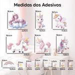 Adesivo Papel De Parede Infantil Unicórnios Cupcake EstrelaAGRADECEMOS A SUA PRESENÇA!Adesivo Papel de Parede Infantil Unicórnios Cupcake EstrelaESSE KIT CONTÉM:- 1 Folha de Adesivo Papel de Parede Infantil Unicórnios Cupcake Estrela;- Total: 32 Adesivos;- 6 Adesivos de Unicórnios;- 5 Adesivos de Estrelas Rosas;- 3 Adesivos de Estrelas Amarelas;- 12 Adesivos de Cupcake;- 2 Adesivos de Arco Íris;- 4 Adesivos de Cabeça de Unicórnio;MEDIDAS:- Folha Inteira: 19cm de largura x 119cm de comprimento;- Unicórnio 1: 18,4 cm de largura X 22,9 cm de comprimento;- Unicórnio 2: 10,7 cm de largura X 18,6 cm de comprimento;- Unicórnio 3: 17,3 cm de largura X 18,7 cm de comprimento;- Unicórnio 4: 18,4 cm de largura X 27,5 cm de comprimento;- Unicórnio 5: 18,4 cm de largura X 18,4 cm de comprimento;- Unicórnio 6: 13,8 cm de largura X 18,6 cm de comprimento;- Arco Íris: 6,6 cm de largura X 14,9 cm de comprimento;- Estrela Amarela: 3,7 cm de largura X 3,9 cm de comprimento;- Estrela Rosa: 4,5 cm de largura X 4,5 cm de comprimento;- Cupcake 1: 3,6 cm de largura X 5,4 cm de comprimento;- Cupcake 2: 3,4 cm de largura X 4,3 cm de comprimento;- Cupcake 3: 3,8 cm de largura X 4,3 cm de comprimento;- Cupcake 4: 4,1 cm de largura X 5,2 cm de comprimento;- Carinha de Unicórnio: 4,2 cm de largura X 5,1 cm de comprimento;MATERIAL:- mídia de vinil não tóxico;TIPO DE IMPRESSÃO:- Impressão em alta resolução livre de imperfeições.OBSERVAÇÕES:- Podem ser colocados nas paredes do quarto das crianças, na sala de estudos, no escritório, na geladeira, na sala de brinquedos, no box do banheiro ou em muitos outros lugares.- A aplicação é muito simples, é só tirar o adesivo e colar como quiser.- Os Adesivos já seguem com os recortes para agilizar e facilitar sua instalação, cortes feitos com alta precisão no momento da impressão para garantir a melhor qualidade.- Podem ser aplicados em paredes lisas, com tinta acetinada, latex e acrílica, móveis, espelhos, portas, box de banheiro, livres de poeira ou pó de gesso. Não aplicar sobre tinta fresca, tinta magnética, superfícies irregulares ou texturizadas, locais com infiltrações.* Imagem ambiente ilustrativaPRODUTO NÃO TOXICO
