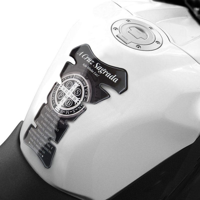 Adesivo Protetor de Tanque para Moto de São Bento Descrição São Bento dedicou-se à vida de oração, meditação e aos diversos exercícios para a santidade, foi um homem sedento de Deus. Segundo São Gregório Magno, seu biógrafo, em tudo ele quis agradar a Deus. Colocava o amor ao Senhor sobre todas as coisas, sendo um homem silencioso, obediente e humilde. A Medalha atribuída a ele é a Medalha da Santa Cruz, que representa o poder da cruz de Cristo, temida pelo demônio, e cultivada na fé de cada cristão. Disponível na cor preta, o Adesivo para Moto São Bento mede 20x13,7x0,2 cm, e traz a imagem da medalha e a oração deste poderoso intercessor, para todos aqueles que são devotos dele, querem expressar esta fé e, principalmente, pedir a proteção em seus caminhos. Material: Adesivo resinado. Preto. Medida: 20x13,7x0,2 cm. Características Mais informações Acabamento: Resina
