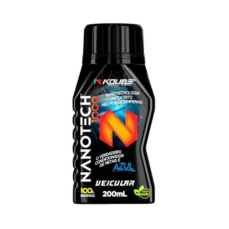 Aditivo Nanotech 1000 - Condicionador De Metais 200ml 30017aditivo oleo / condicionador de metais nanotech 1000 koube 200mlnanotech 1000 koube é uma composição química elaborada com a mais avançada tecnologia em compósitos de polímeros de escala nanométrica. tem como finalidade reduzir o atrito entre metais. a aderência ao metal ocorre através de uma película ultra resistente que atinge os pontos mais críticos e finos do sistema de lubrificação de motores, máquinas e equipamentos, proporcionando maior vida útil dos motores, podendo reduzir o consumo de combustível e energia. INSTRUÇÕES DE USO:aplicar 200 ml de nanotech 1000 koube em até 7 litros de óleo lubrificante, a cada 25.000 km ou 12 meses. CARACTERÍSTICAS:elimina o atrito, mesmo nos pontos mais críticos e finos do sistema de lubrificação;evita o desgaste prematuro dos componentes metálico do motor;aumenta a vida útil do motor;reduz o consumo de combustível. ATENÇÃO: ESTE PRODUTO NÃO SUBSTITUI O ÓLEO LUBRIFICANTE E NÃO ALTERA A VISCOSIDADE, COMPATÍVEL COM QUALQUER LUBRIFICANTE DE CLASSIFICAÇÃO API. CARACTERÍSTICAS GERAIS DO PRODUTO:garantia:- garantia da loja