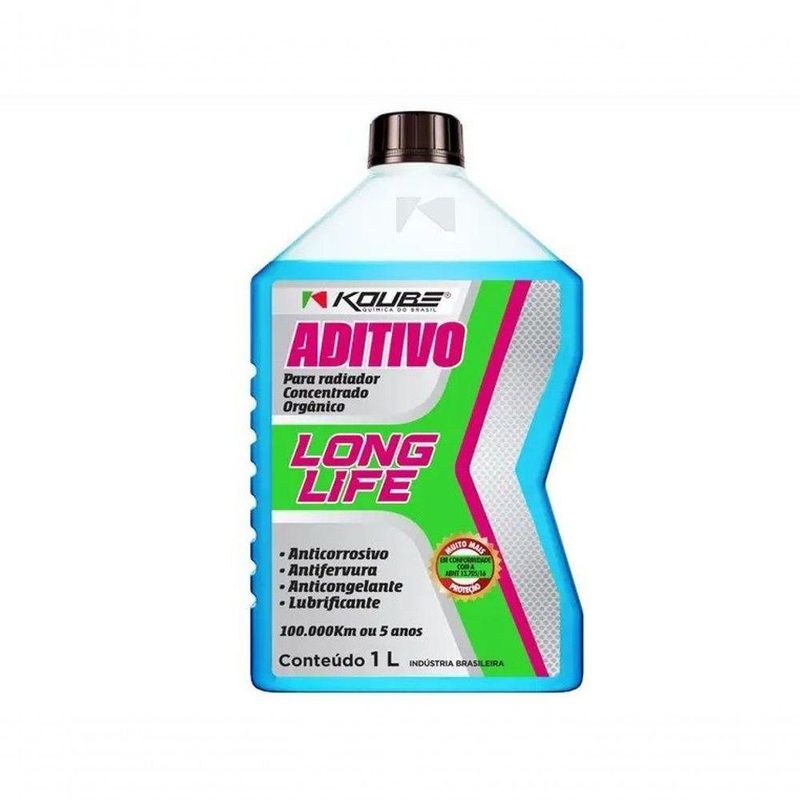 Aditivo Radiador Concentrado 1l Azul Organico - Long Life 12002Aditivo radiador 1l azul concentrado organico long life- durabilidade de 5 anor ou 100mil km.- o aditivo concentrado orgânico long life koube, é um fluído para radiadores com tecnologia orgânica de longa duração, a base de glicol. suas prioridades coligativas reduzem a temperatura de congelamento e aumenta a temperatura de ebulição da solução arrefeicedora, contribuindo para uma melhor dissipação de calor produzido pelo motor.Possui propriedades antifervura, anticongelamento, anticorrosiva e antiespumante. protege contra cavitação, corrosão e oxidação das partes metálicas do sistema de arrefeicimento.atende aos requisitos de qualidade exigidos pelas normas nacionais e internacionais.- MODO E RECOMENDAÇÕES DE USO: antes de colocar o aditivo concentrado orgânico long life koube no radiador, execute a limpeza completa no sistema de arrefecimento com água pura. em caso de excesso de sujeira, recomenda-se a aplicação do limpa radiador.- ATENÇÃO: não utilize o produto puro no sistema e não misture com outros fluídos ou soluções.CARACTERÍSTICAS GERAIS DO PRODUTO:Garantia:- GARANTIA DA LOJA