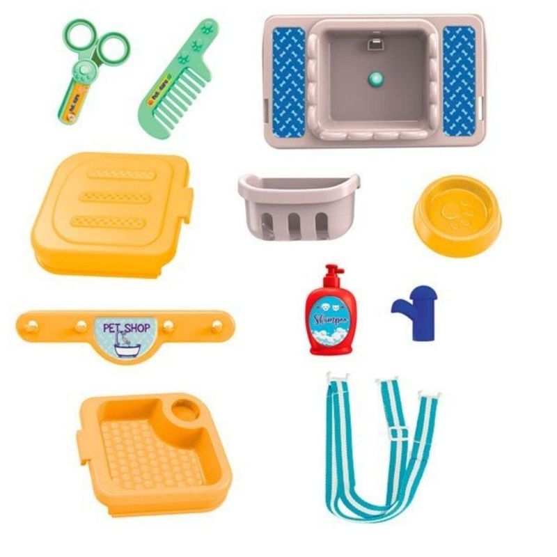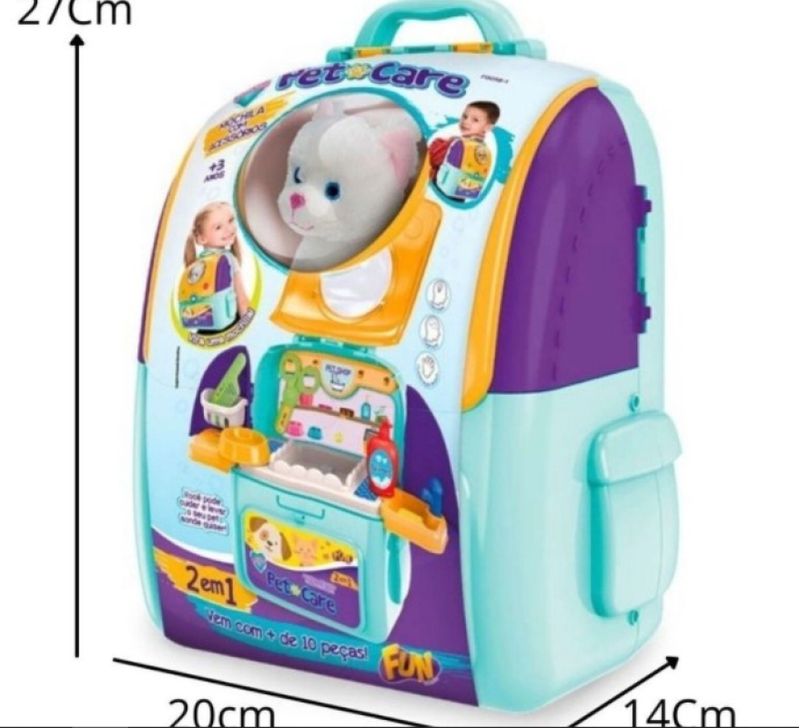 kit 2 em 1: Mochila e Petshop. Vem com Vários Acessórios. Tudo Pode Ser Carregado Para Qualquer Lugar Dentro da Mochilinha! 01 pet, 01 mochila com alças para transporte, 01 pote de ração, 02 caixas de ração, 01 pente, 01 secador, 01 tesoura, 01 suporte para pendurar utensílios, 01 pia com torneira, 01 extensor de pia, 01 cartela de adesivos, 01 cesta para pendurar, 01 frasco de shampoo e 01 base para pet - Tamanho do Pet: 12 cm - Material: Plástico - Idade recomendada: 3 Anos - Certificado: Ce-Bri/Innac - 0115-000 Nm 300/2002 Ocp 0061